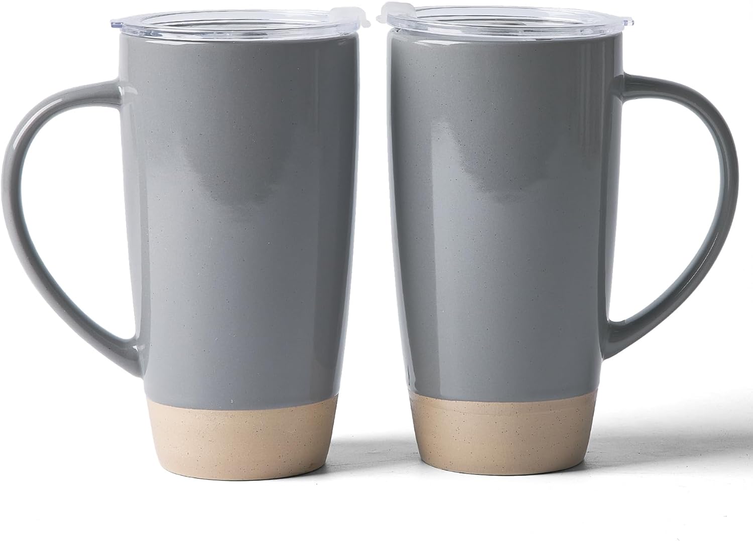 famiware Milkyway Coffee Mugs, 20oz Large Coffee Mug, Ceramic Mug Set of 2 with Lid, Cup Set with Handle for Latte, Tea, Cocoa, Milk, Home & Office, Dark Gray