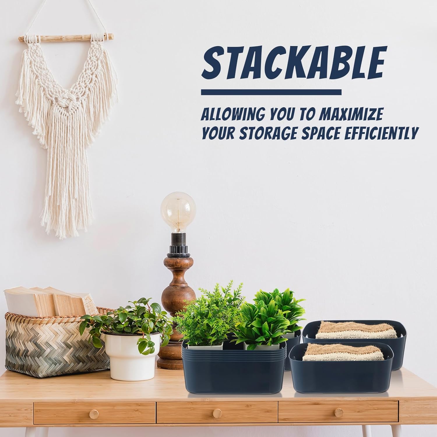 - Wide Range of Use: our stackable blue organization baskets are suitable for your home, bedroom, bathroom, kitchen, living room, office or study area, and you can use them to hold small daily sundries, such as snacks, cosmetics, books, toys and various clothes, they can help you a lot