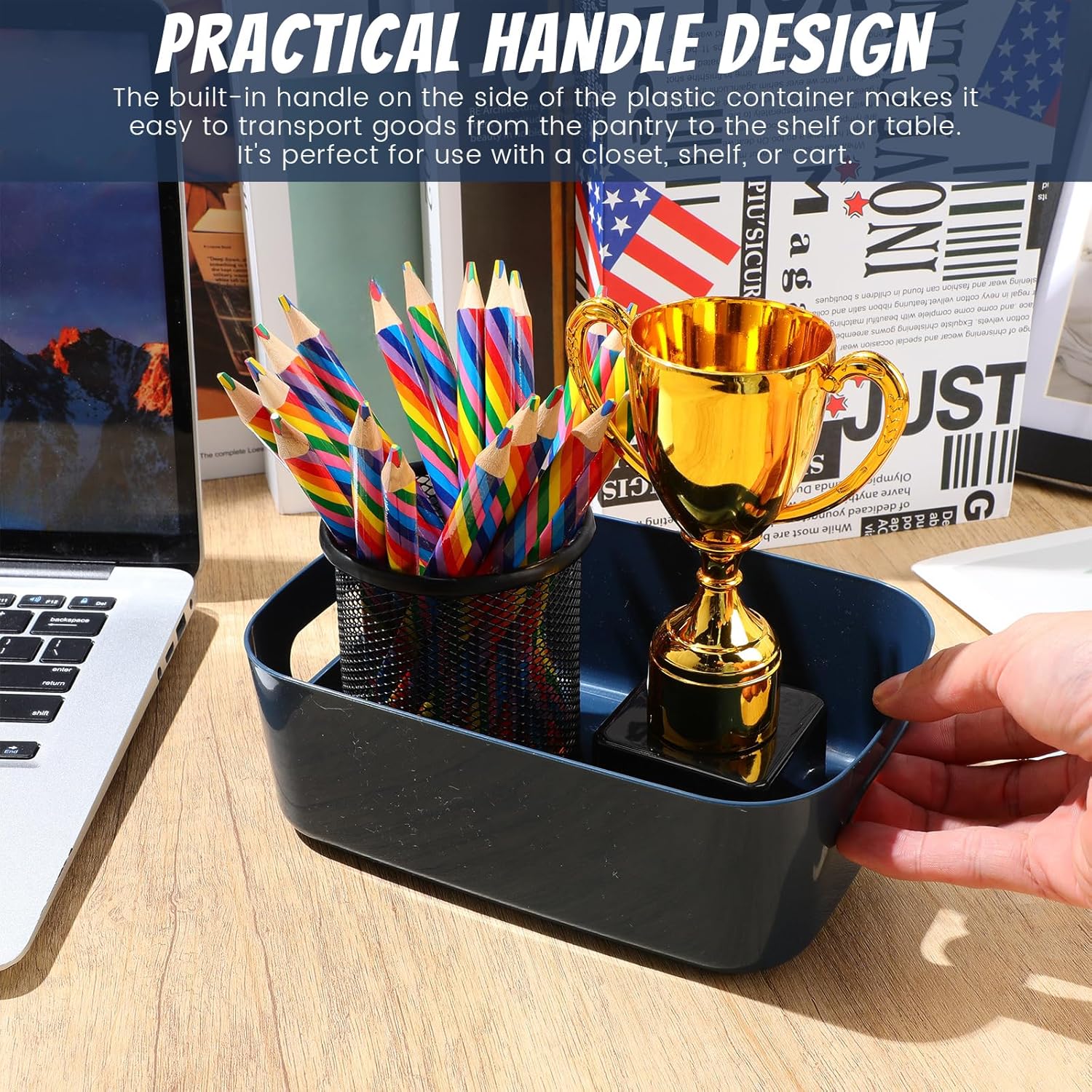 - Multipurpose Storage Bin Set: you will receive 10 pieces of blue plastic storage bins with handles, the ample quantity can certainly meet your daily storage requirements and classification needs, which can hold a lot of things, maximizing your space and making your home tidier and cleaner
