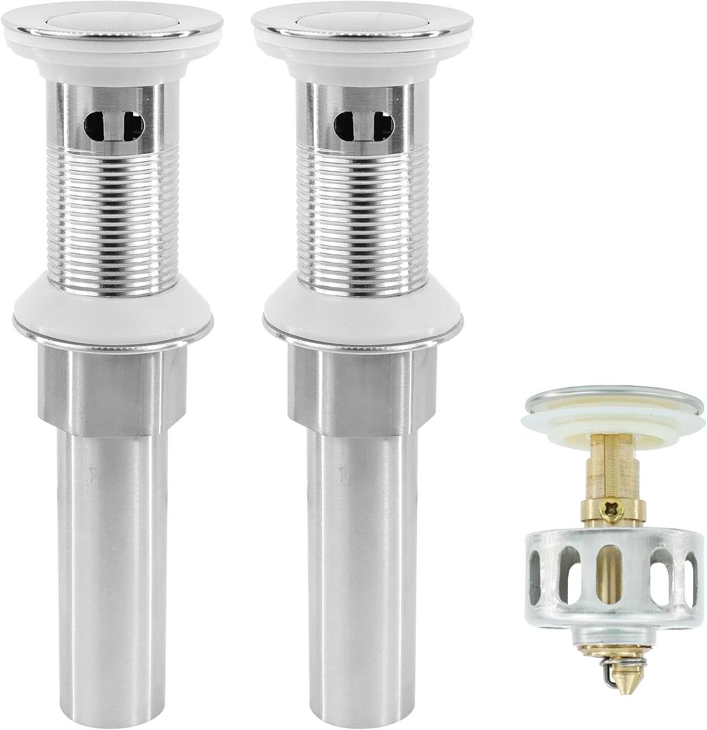 - Built-in Strainer: The pop up drain comes with a detachable strainer basket that not only can prevent debris clogging the drain, but also can catch hair and trinket. Anti-blocking, easy to remove and clean
