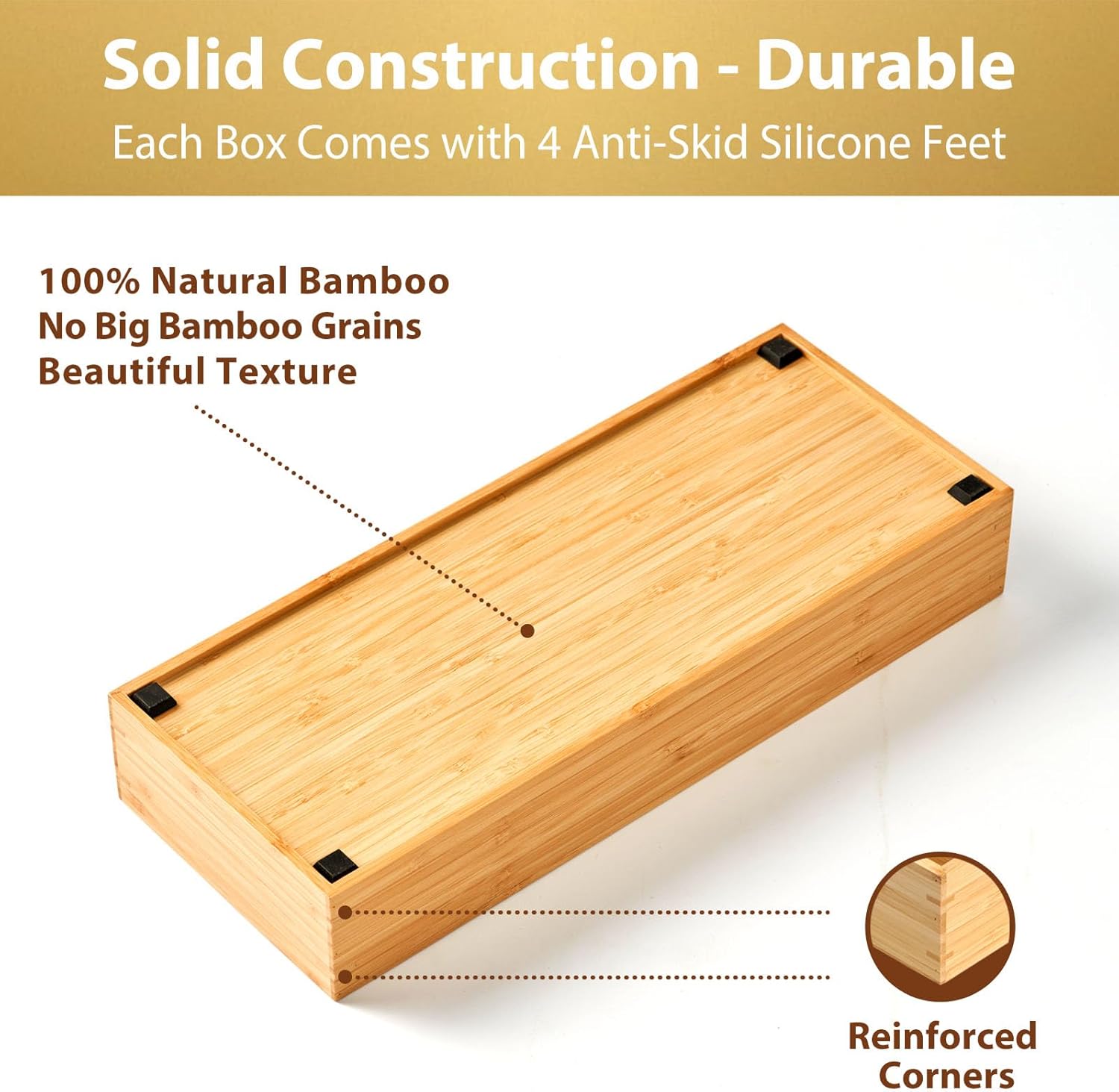 Umilife Bamboo Kitchen Drawer Organizer, Extra High Silverware Tray, Flatware Cutlery Storage Box, Multi-Use Holder in Office, Bathroom, Pantry - 12"x3"x2.5" (Set of 2)