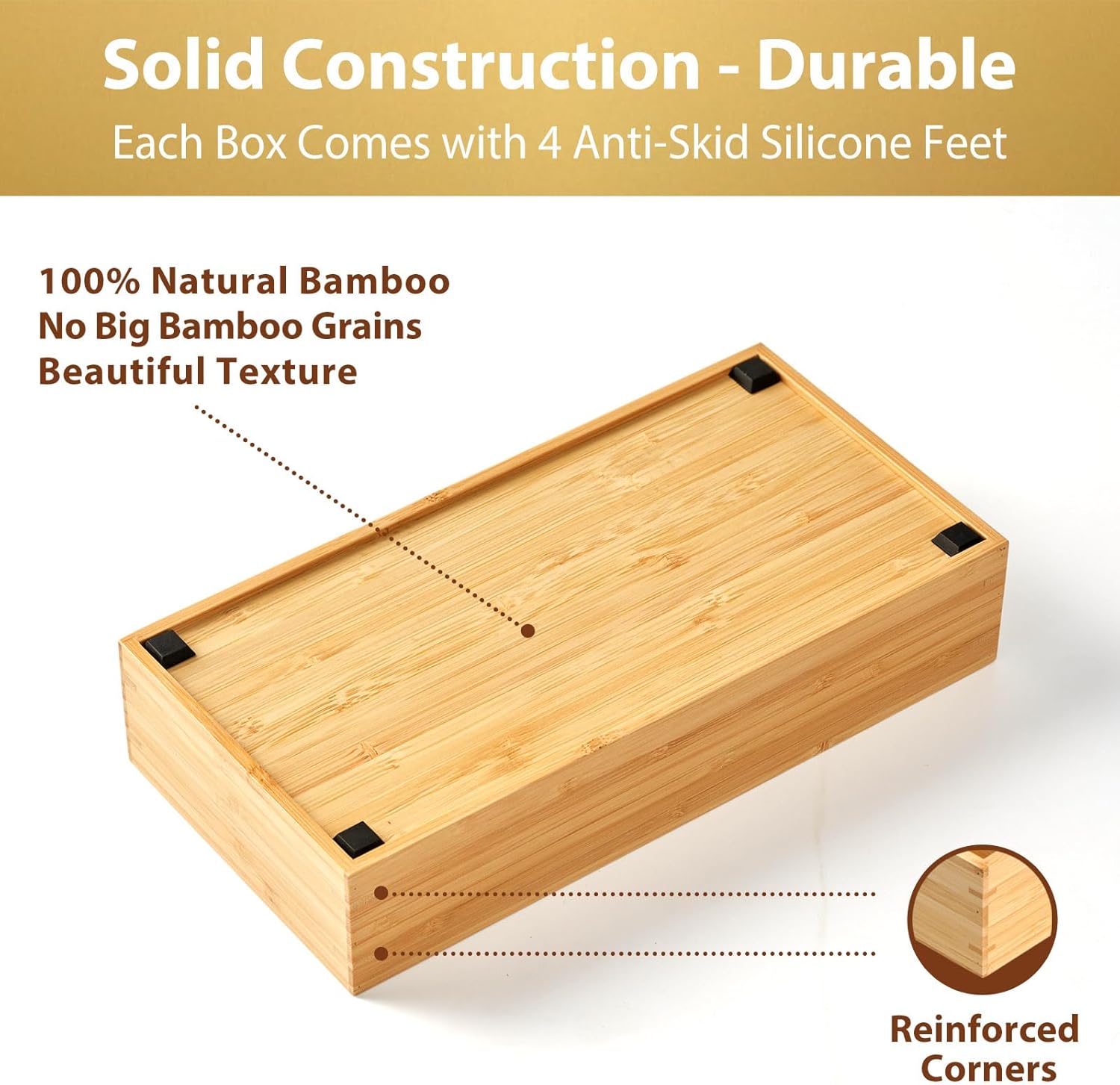 - Special Feature : 2.5" High Drawer Organizer. Authentic bamboo (even the base), with premium silicone anti-skid feet. 2.5" High Drawer Organizer. Authentic bamboo (even the base), with premium silicone anti-skid feet.