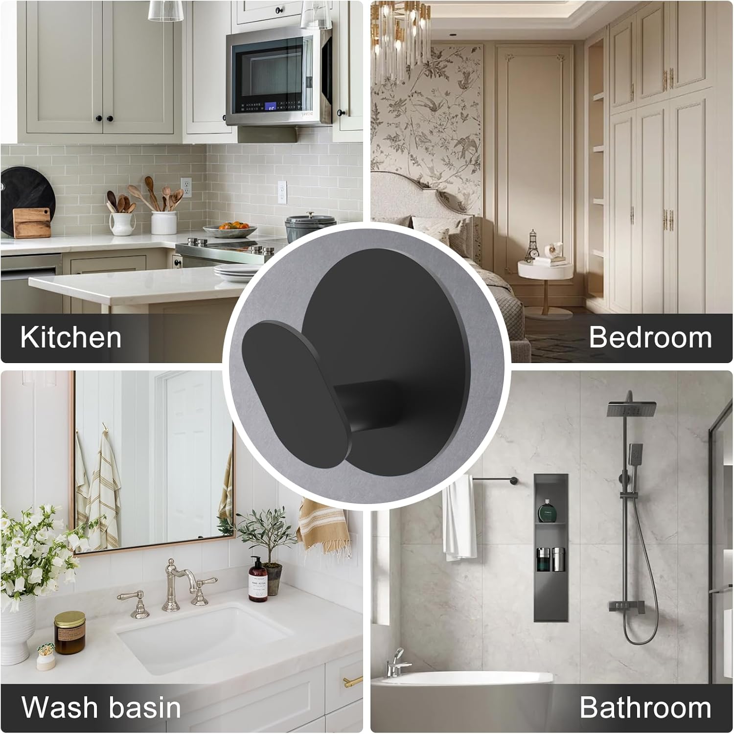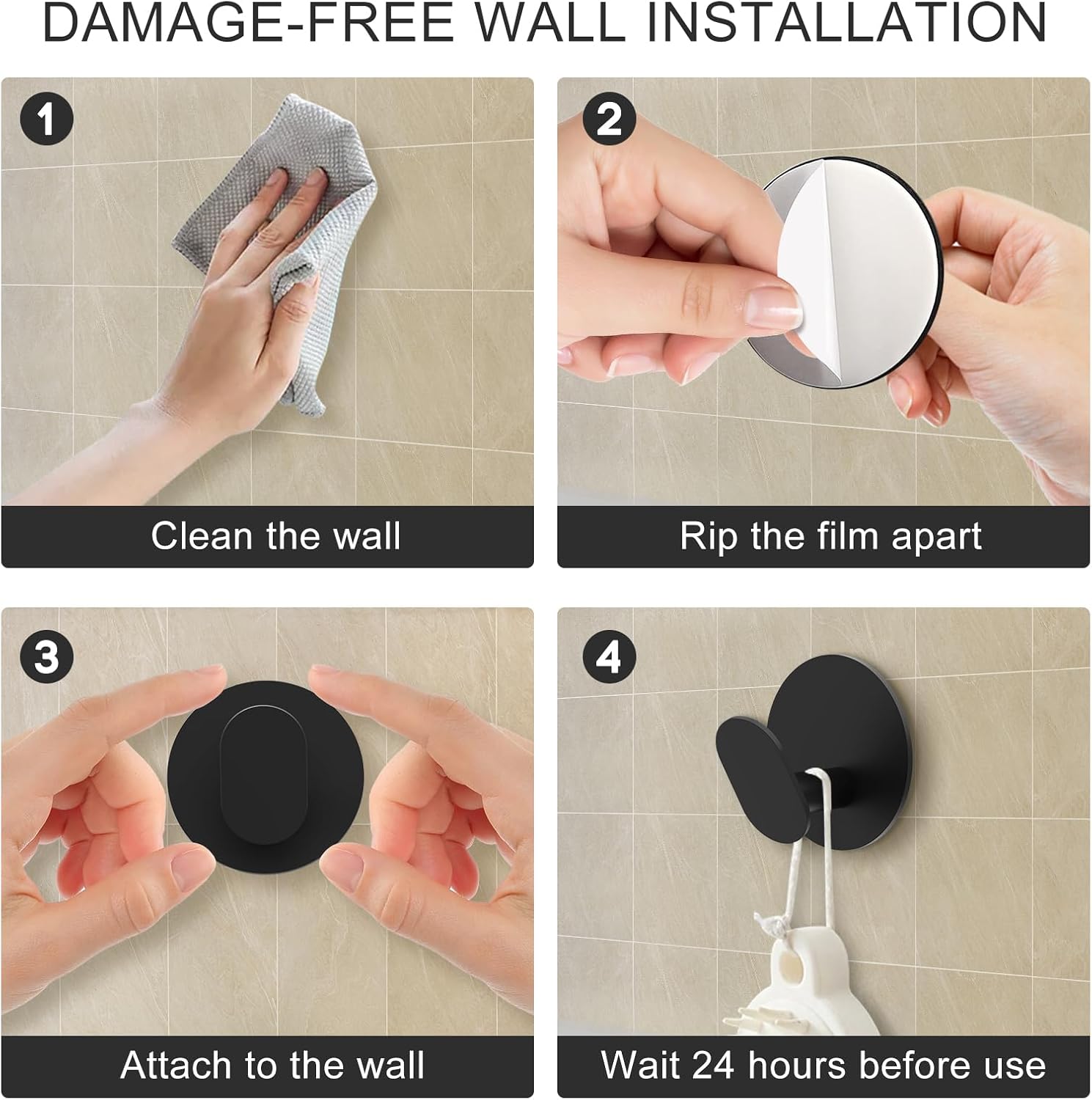 - Surface Compatibility: Wall Hooks mount securely on smooth surfaces like tile, glass, metal, wood, & marble. Avoid painted walls, wallpaper, limestone, & uneven textures.