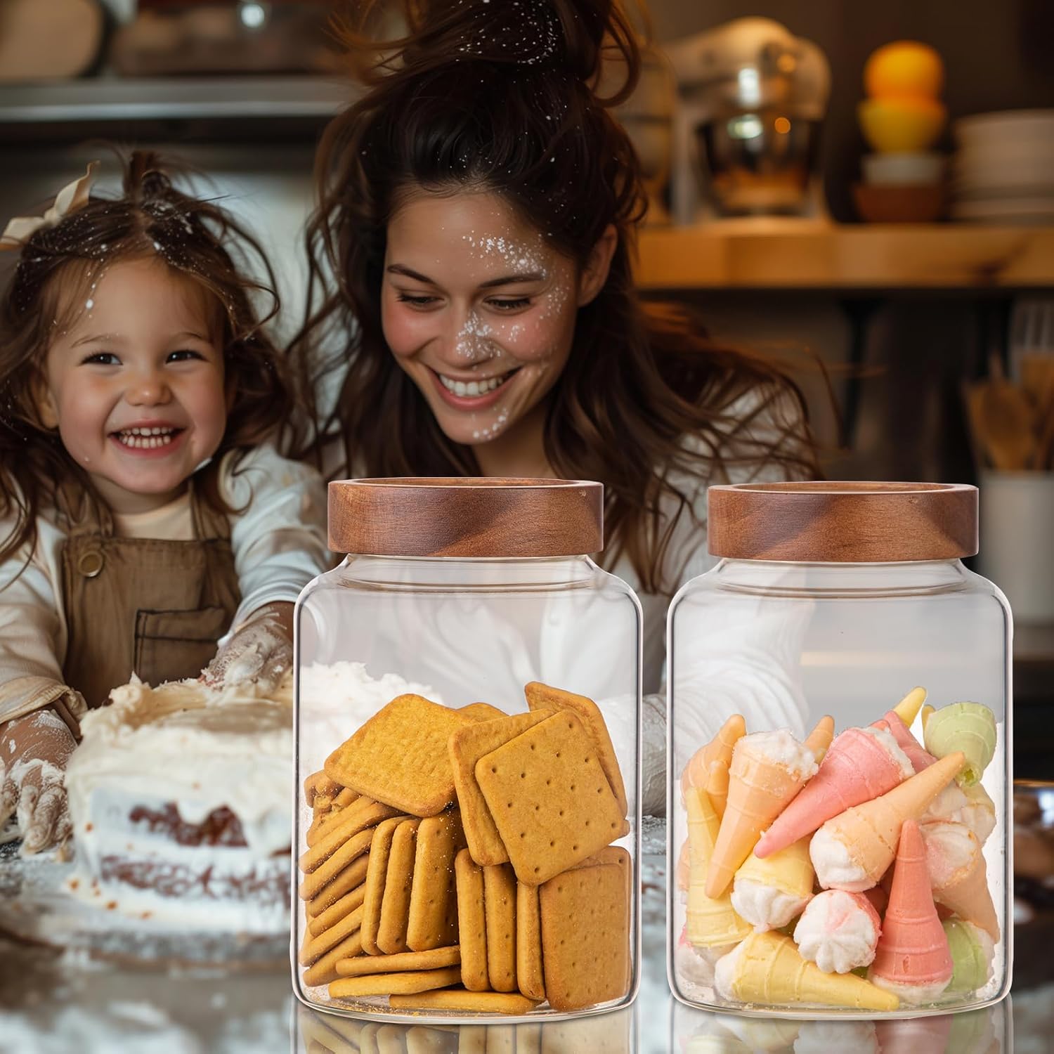 Large Glass Coffee Jars 60 oz /1800ml, Round Storage Canister with Wooden Lid Clear Glass Food Jar for Pantry Sugar Tea Coffee Bean Spice Nuts Cookies Bath Salts (1800ml/60oz-2PACK)