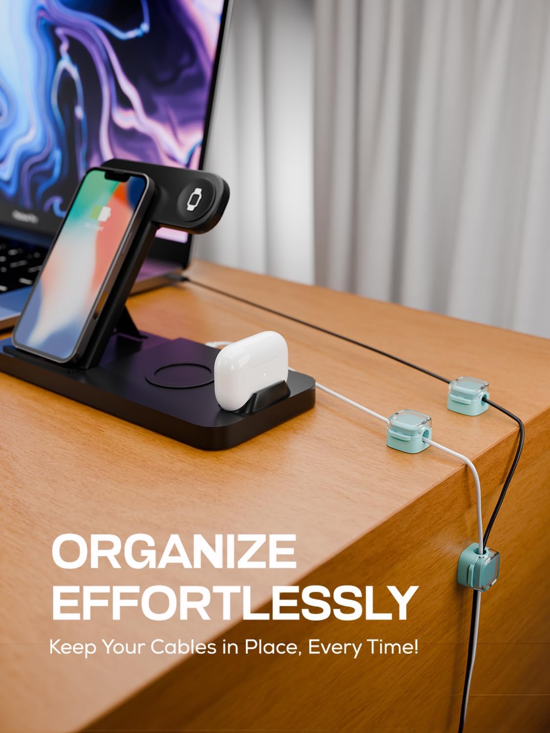- 【Transform Chaos into Order】:- Our magnetic cord clip keeps your cables untangled & accessible.The 6 pack magnetic cable holder brings an order to your messy desks,workstations & gaming setups. Charger cord holder works well on wood, glass, ceramic, plastic & other smooth surfaces