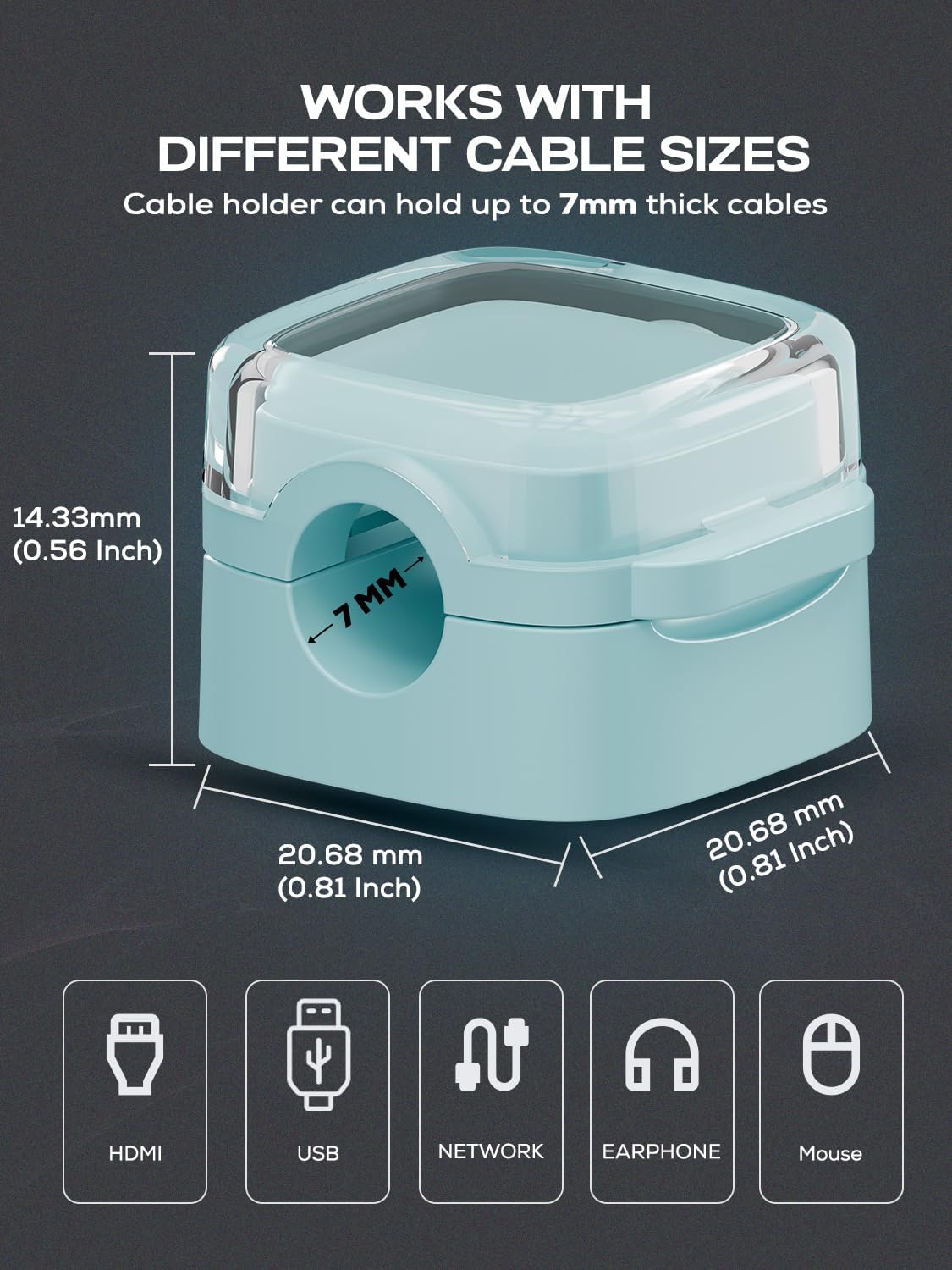 - 【Rock-Solid Magnetic Lock】:- The strong magnet of the phone cord holder prevents cables from popping out. Cord holders have a powerful magnetic lock that keeps your cables secured & perfectly in place. Charging cable holder has a 7mm diameter which allows smooth cable movement