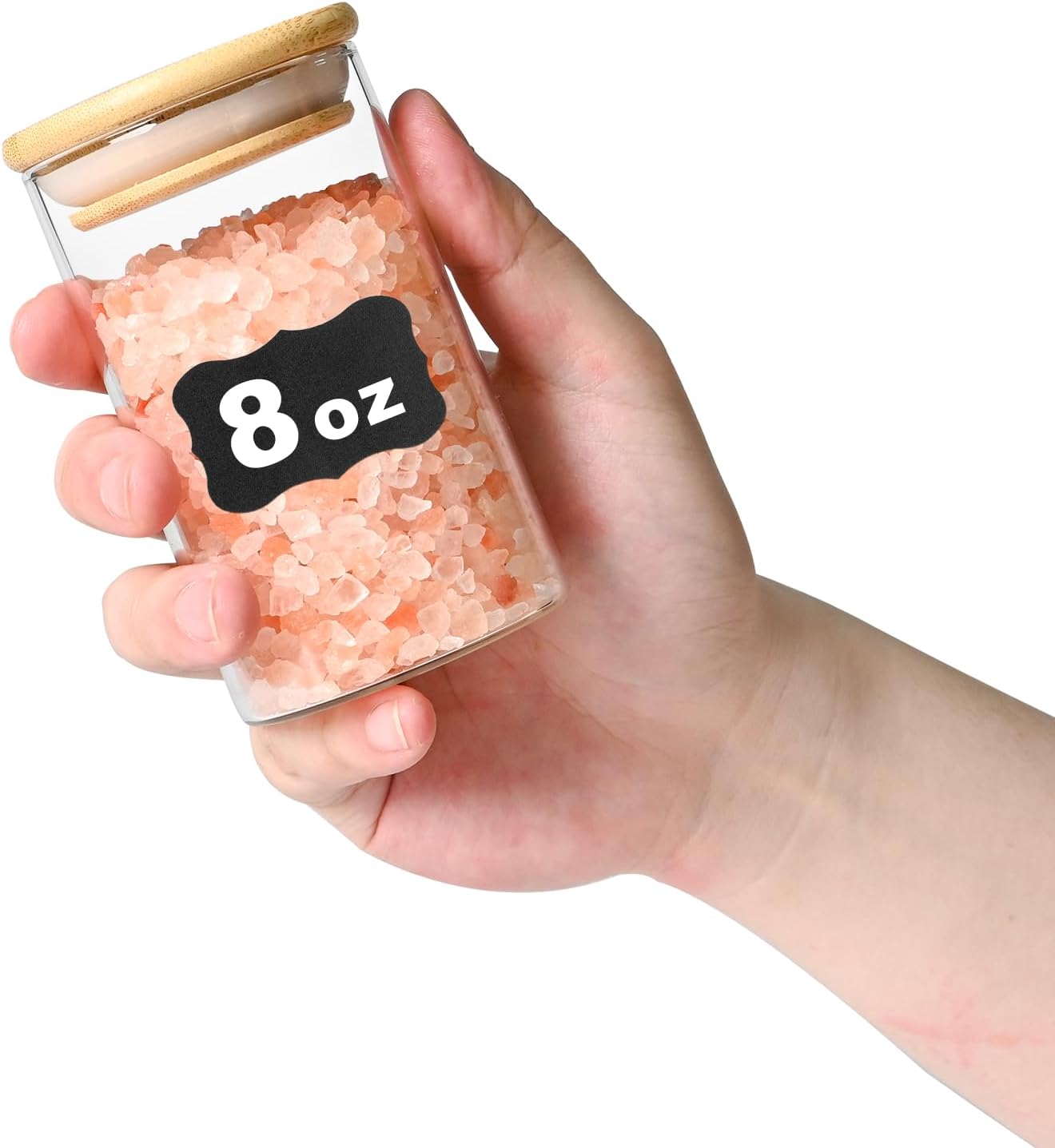 8oz Glass Food Storage Jars, Glass Jars with Bamboo Lids, Kitchen Storage Jars, Set of 12, Canisters with Airtight Lids for Spice, Coffee, Cookie, Pantry Organizers