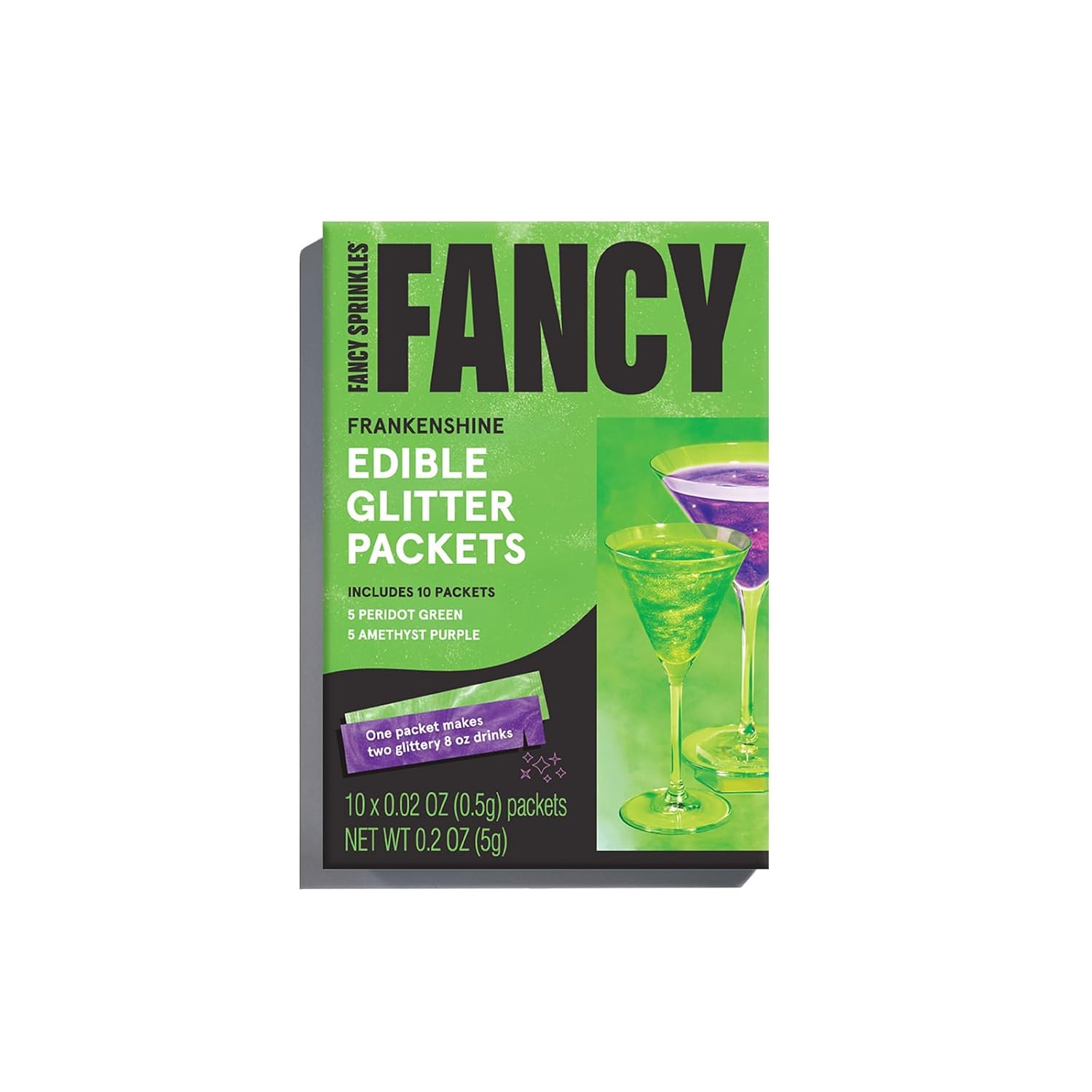 Fancy Sprinkles Limited Edition Halloween Frankenshine Edible Glitter Packets Portable & On-The-Go for Sparkling Drinks, Champagne, Cocktails, Wine, Beer, & more. (1 Pack)