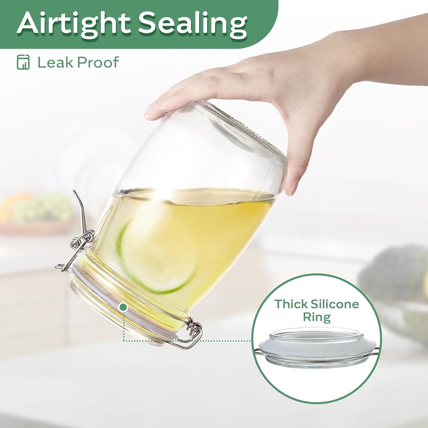 - Package Includes: 4 pack 34 oz airtight glass food jars round