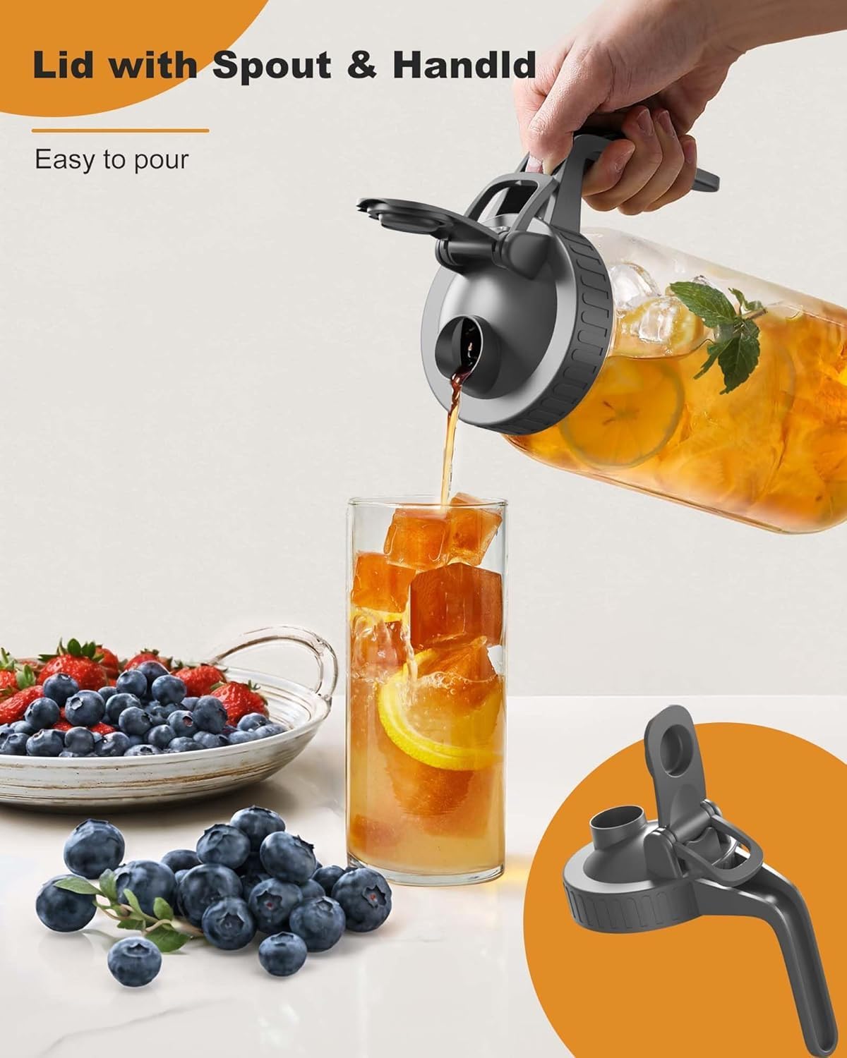 - Easy Pouring & Ergonomic Handle: Designed for comfort and stability, the wide-mouth mason jar lid features a sturdy handle and a spout that make pouring cold brew, fruit tea, or sun tea a breeze—no more unwanted drips or splashes