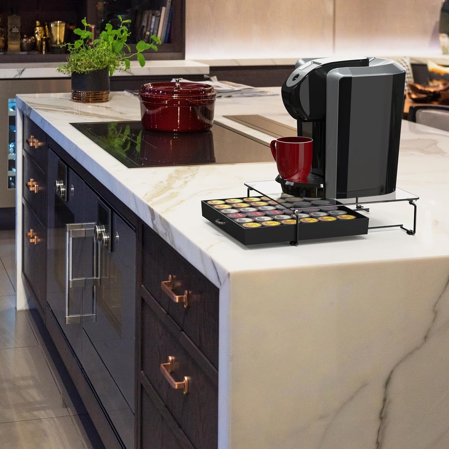DecoBrothers Crystal Tempered Glass Holder Drawer for 36 Coffee Pods Storage, Black