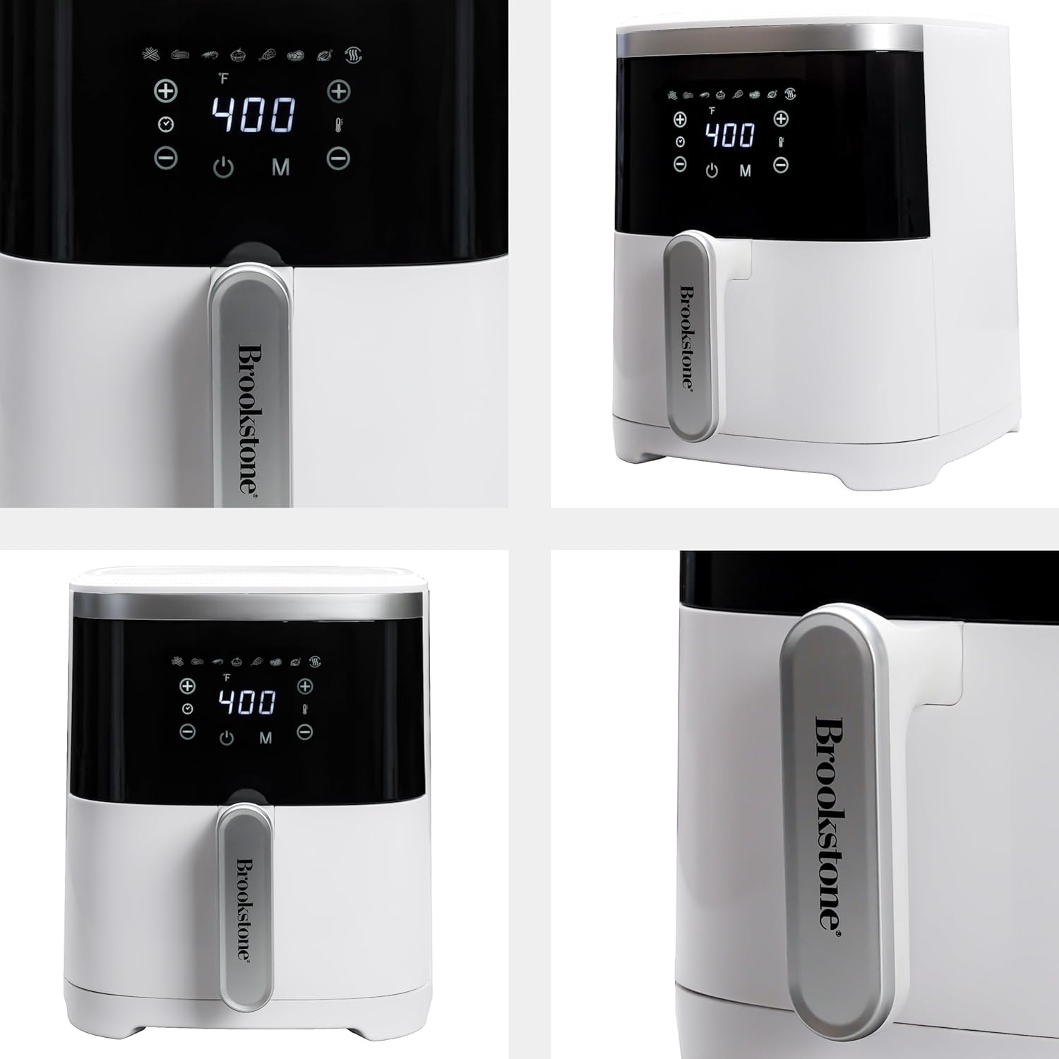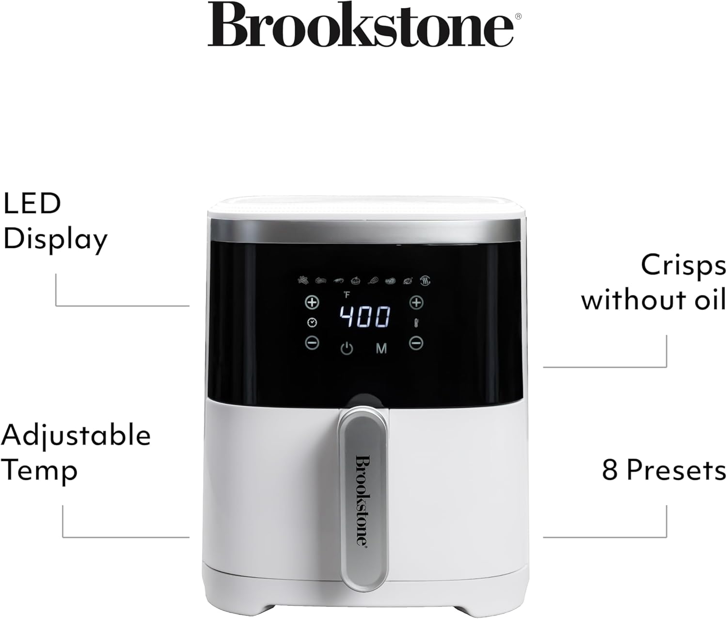 Brookstone Air Fryer – 4.5 Qt, 1300W Large Capacity Fryer with LED Display, 8 Presets, Adjustable Temp, Oil-Free Kitchen Appliance for Baking, Roasting, Frying, Healthy Crispy Meals, White