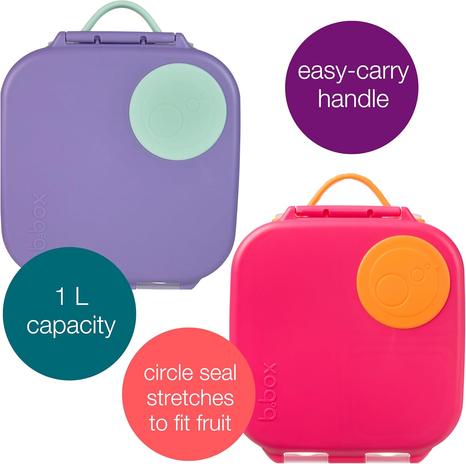 b.box Mini Lunch Box (2-pack), Bento Box for Kids Snack Container with 2 Leak-Proof Compartments, Reusable Snack Containers with Lids, BPA Free Kids Lunch Box, 4 1/4 Cup (Lilac Pop+Strawberry Shake)