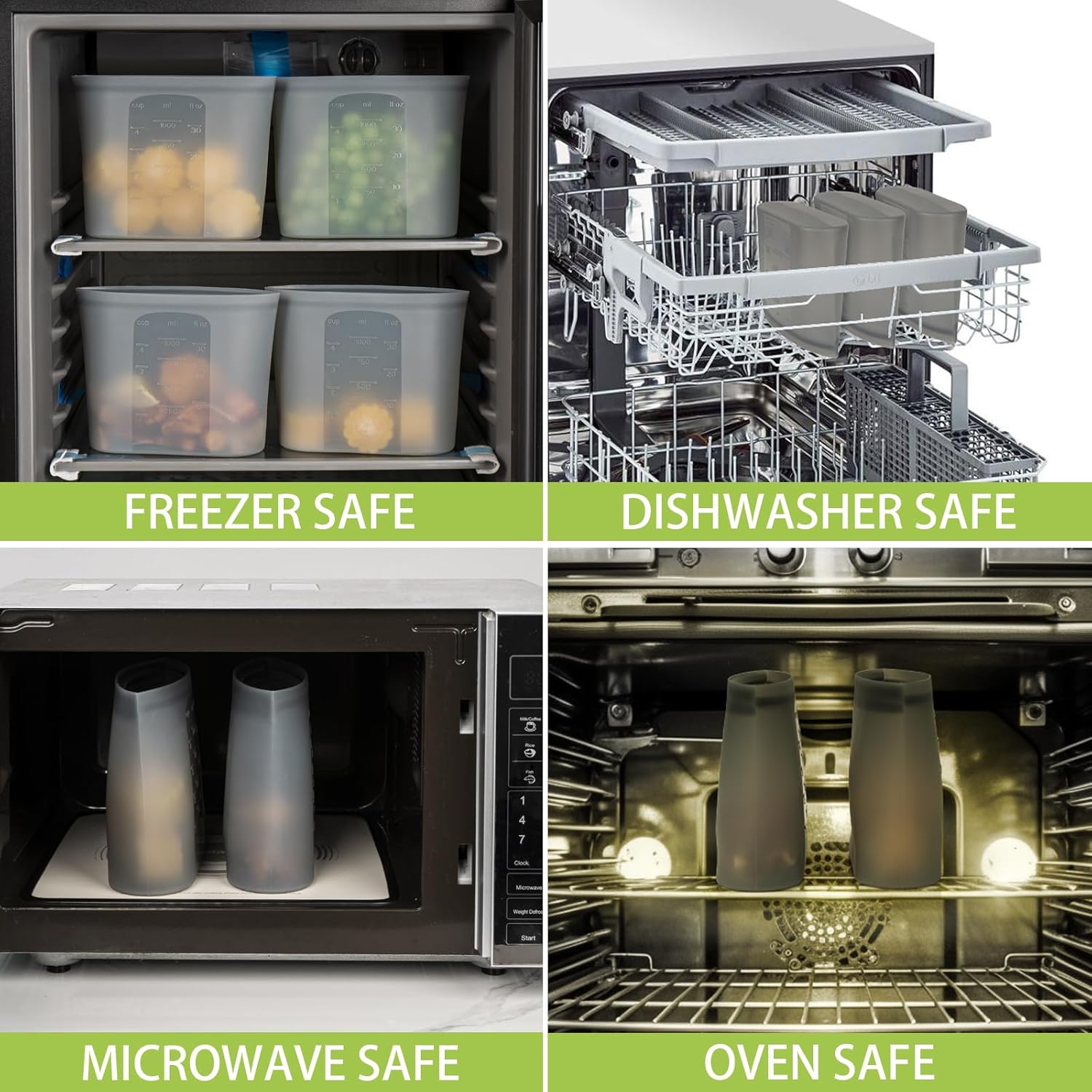 - Special Feature : 100% Silicone, Flexible, Microwave Safe, Dishwasher Safe, Freezer Safe, Oven Safe, Stand Up