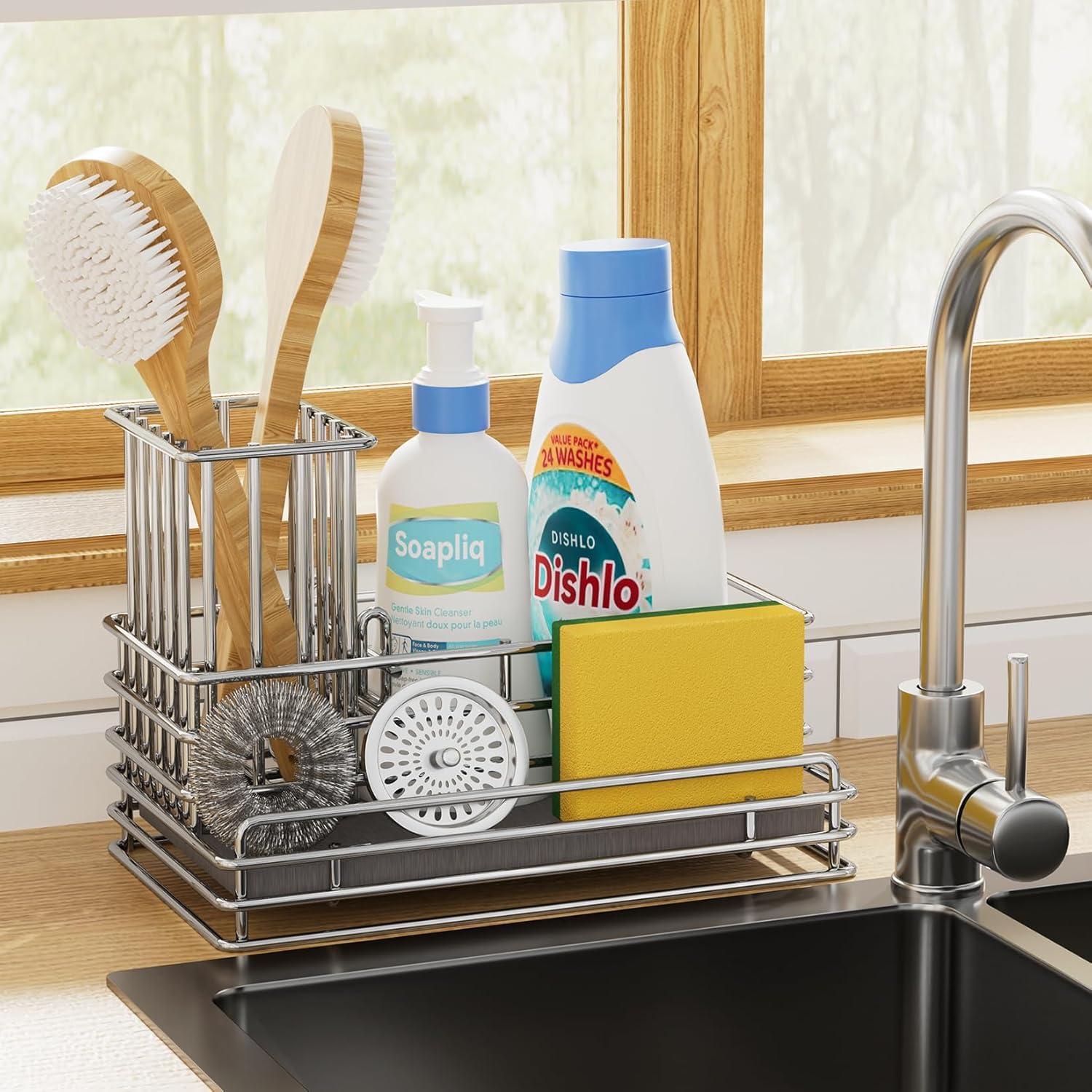 - Anti Slip Sink Rack: Our sink caddy will not slide and can be fixed for a long time without worrying about the sliding and stability of this kitchen sink storage rack