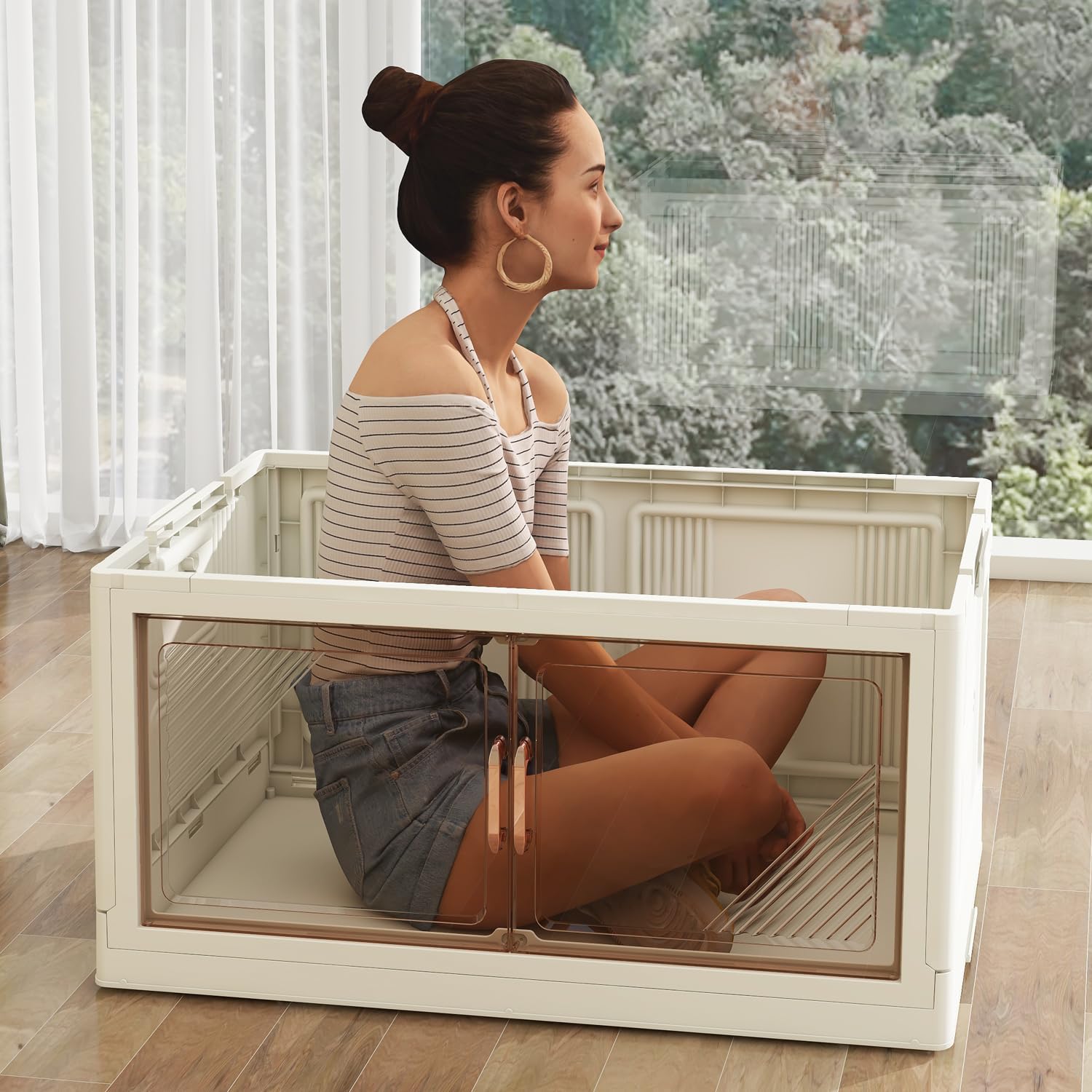 - 【Two Opening Ways】These collapsible storage bins offer two convenient ways to access your closet storage. You have the choice of lifting the top lid for storing bulky items or opening the front door for easy access to frequently used items. This dual-access design provides versatility and ensures that you can organize and retrieve your belongings efficiently according to your needs.