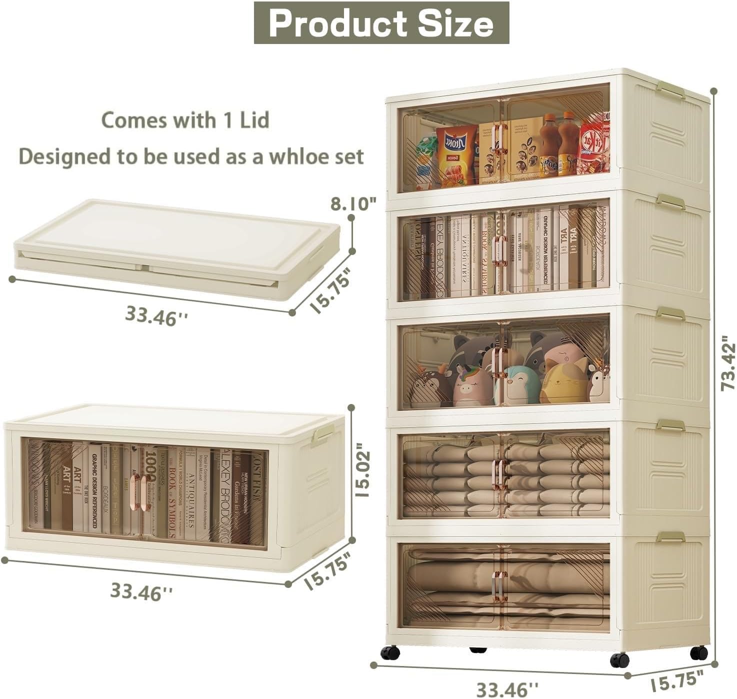 - 【360 Bottom Wheels】These plastic collapsible storage bins with lid are crafted from durable, heavy-duty PP material. They feature four flexible wheels at the base, allowing easy movement during cleaning or reorganization. Each bin can be stacked with a buckle design. This design provides peace of mind, ensuring your bins remain stable and reliable even when fully loaded or in motion.