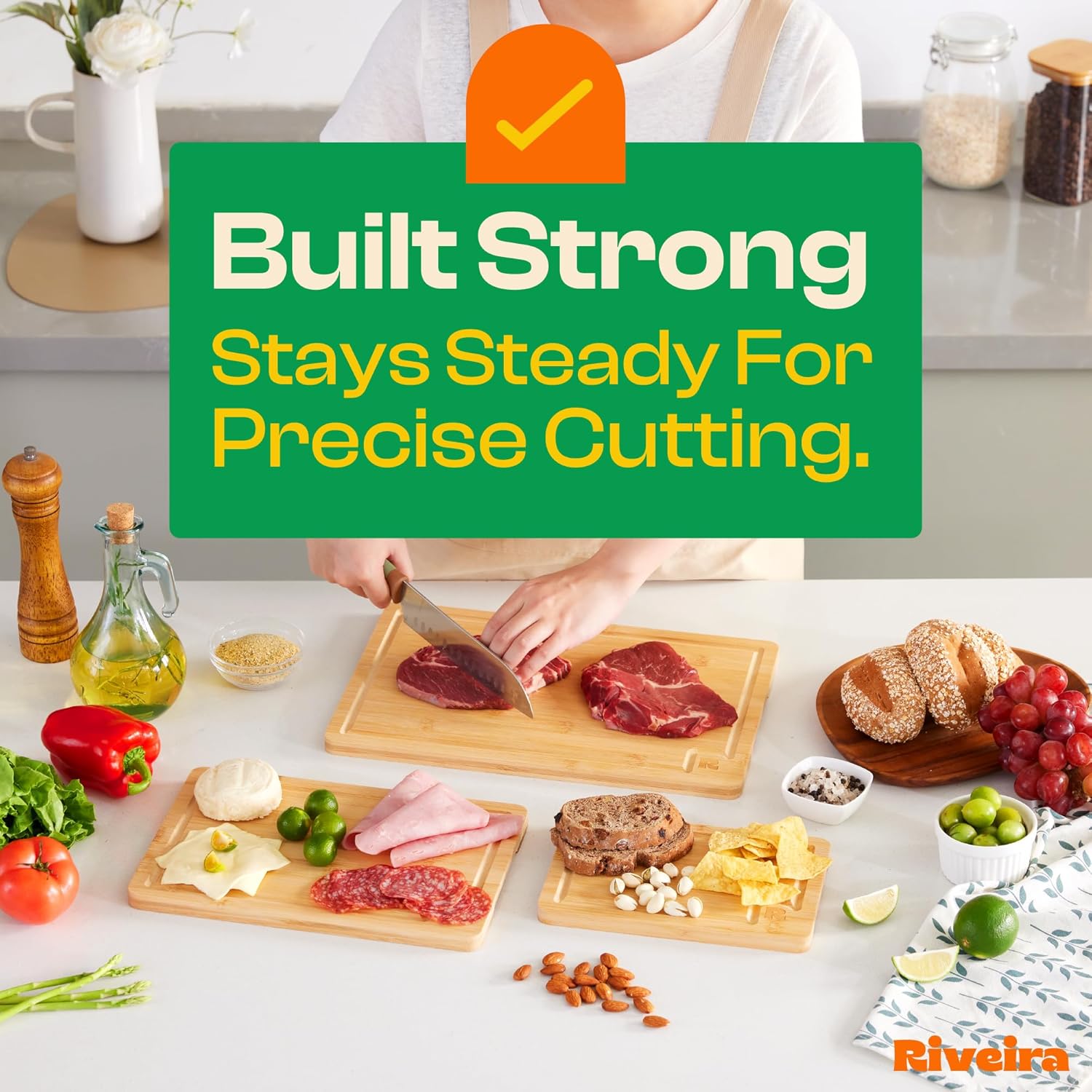 - Functional Addition — Beyond its apparent function, this cutting board for meat serves as the greatest addition to your kitchen. Perfect for serving, solid wood cutting board bamboo transforms into a charming charcuterie board for gatherings. Place the brown bamboo real wood kitchen on the stove or kitchen island to create additional countertop space when needed. These sturdy and durable 8 x 8 core cutting wood showcase its versatility in various culinary scenarios as the biggest help.
