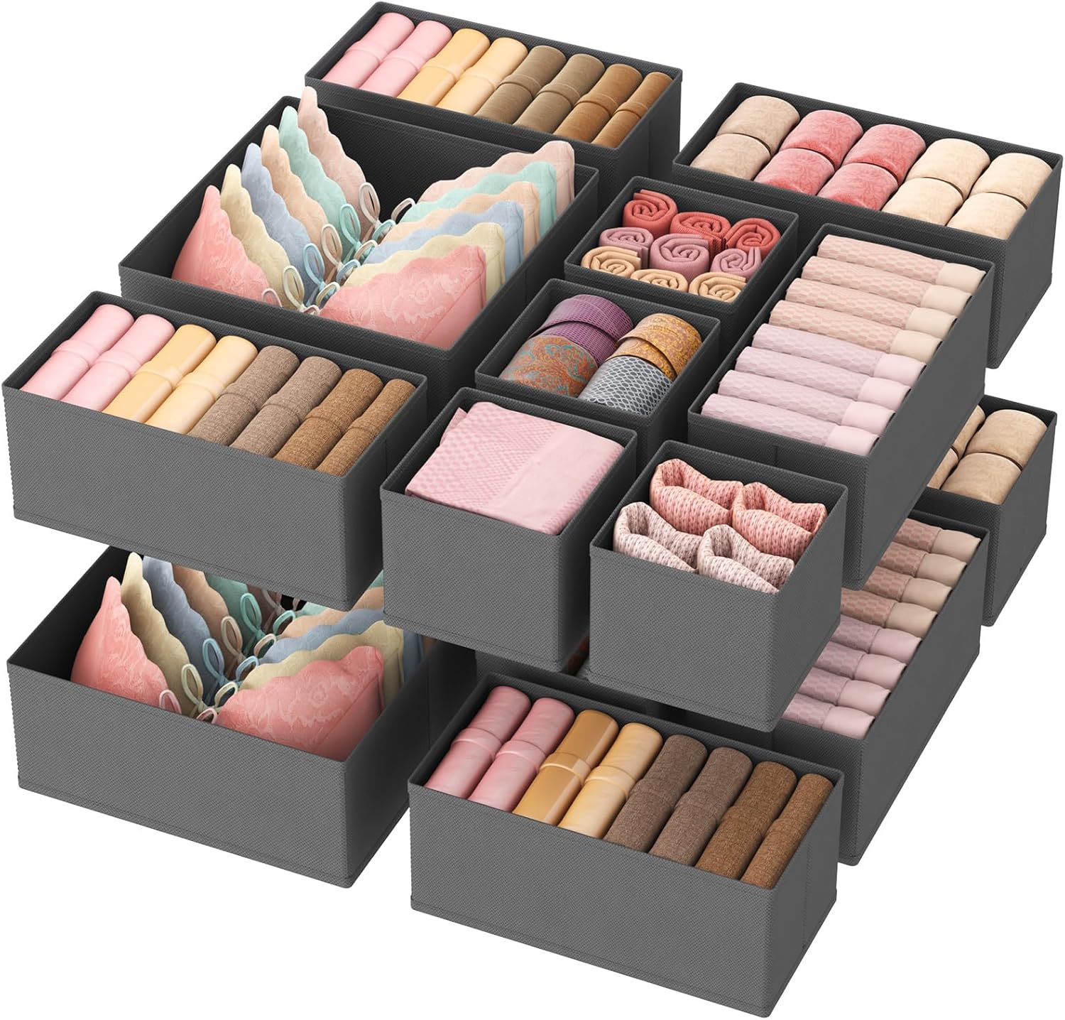 Lifewit 16 Pack Drawer Organizer, Dresser Underwear Drawer Organizer Bins, Foldable Fabric Closet Organizers, Storage Drawer Dividers, Dorm Room Essentials for Clothing, Socks, Towels, Ties Gray