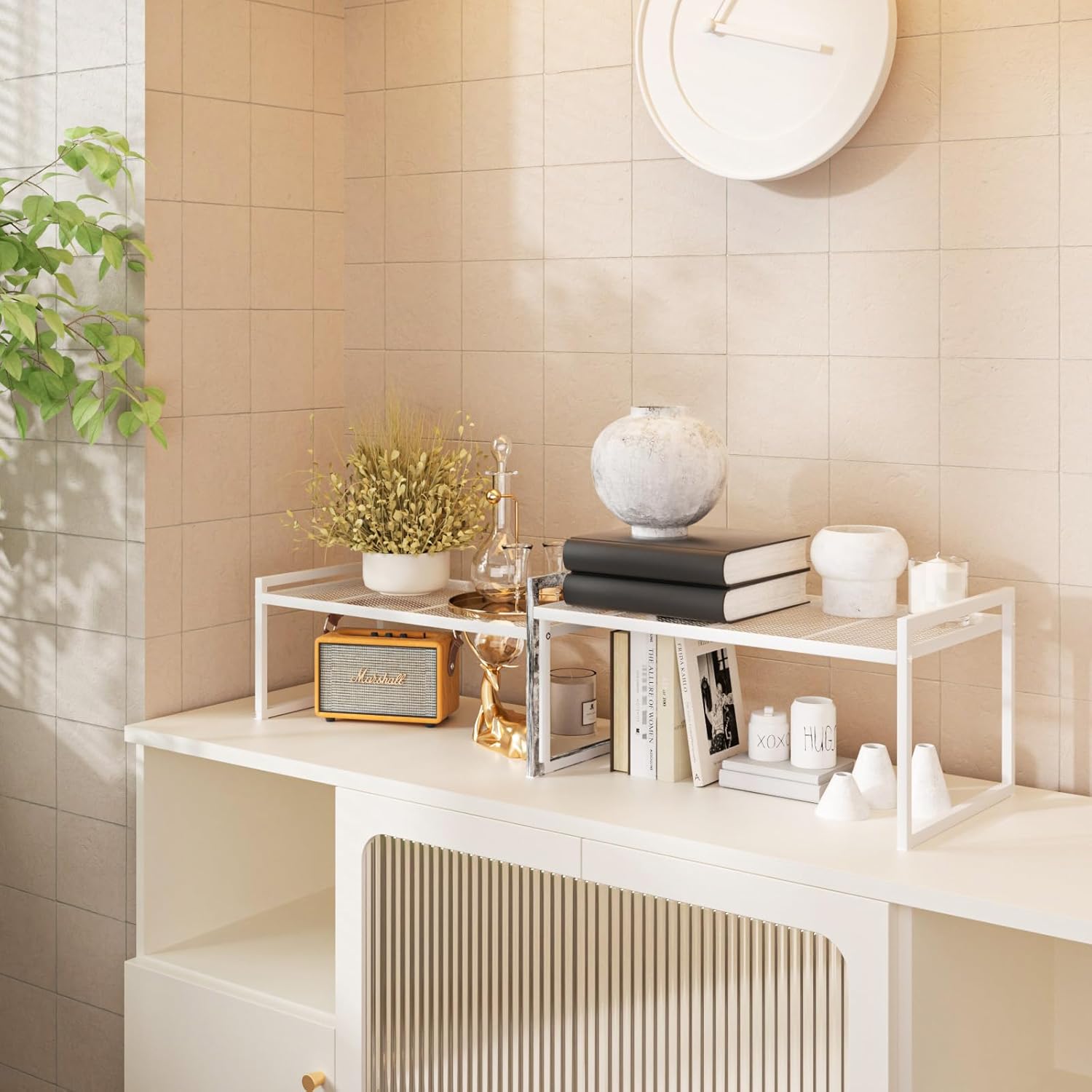 Set of 2 Kitchen Cabinet Organizer Shelf Stackable Sturdy Metal Counter Countertop Pantry Storage Rack