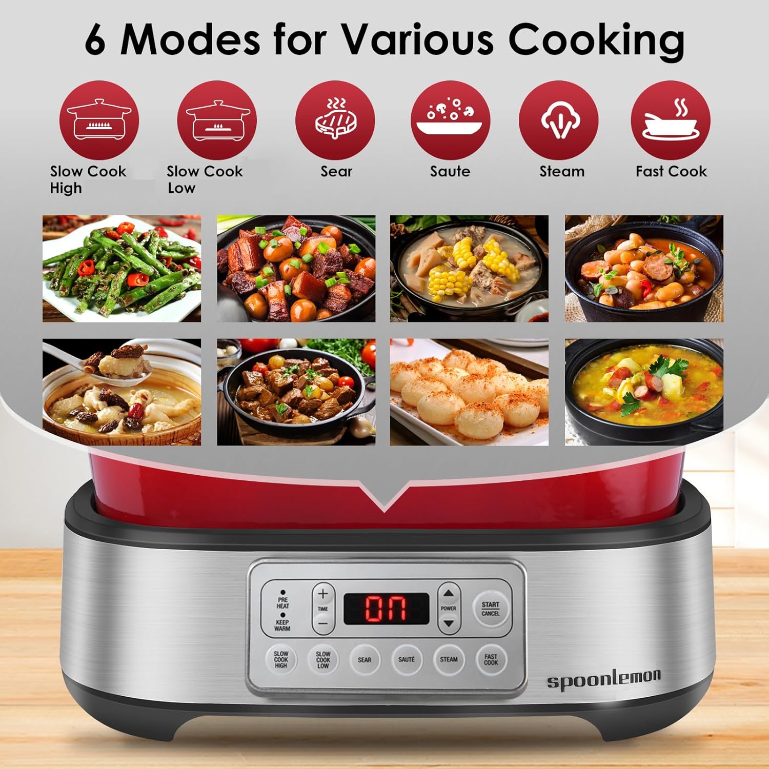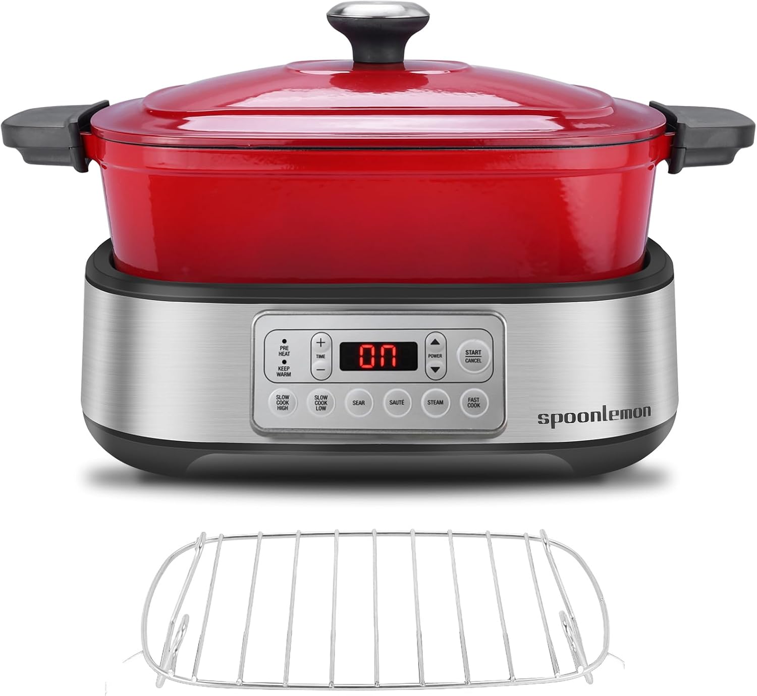 - Replaces 12 Kitchen Appliances: 6 Preset Functions: Slow Cook (Low & High), Sear, Steam, Sauté, Fast Cook. The multi-cooker replaces your Dutch oven, slow cooker, steamer, food warmer, saucier, bread maker, nonstick pot, stock pot, sauté pan, roasting pan, saucepan, cast iron skillet and various utensils, freeing up space and simplifying your cooking routine.
