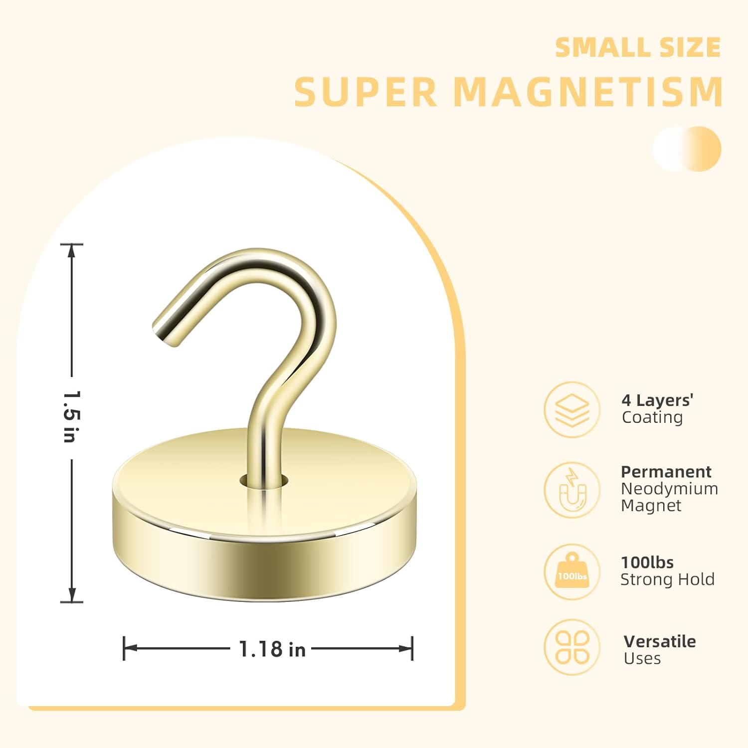 Neosmuk Magnetic Hooks, Cruise Ship Essentials, 100lb+ Heavy Duty Magnetic Hooks for Cruise Cabins, Refrigerator, Grill, Hanging, and Travel | Extra Strong Must-Haves Magnet Hook,Gold