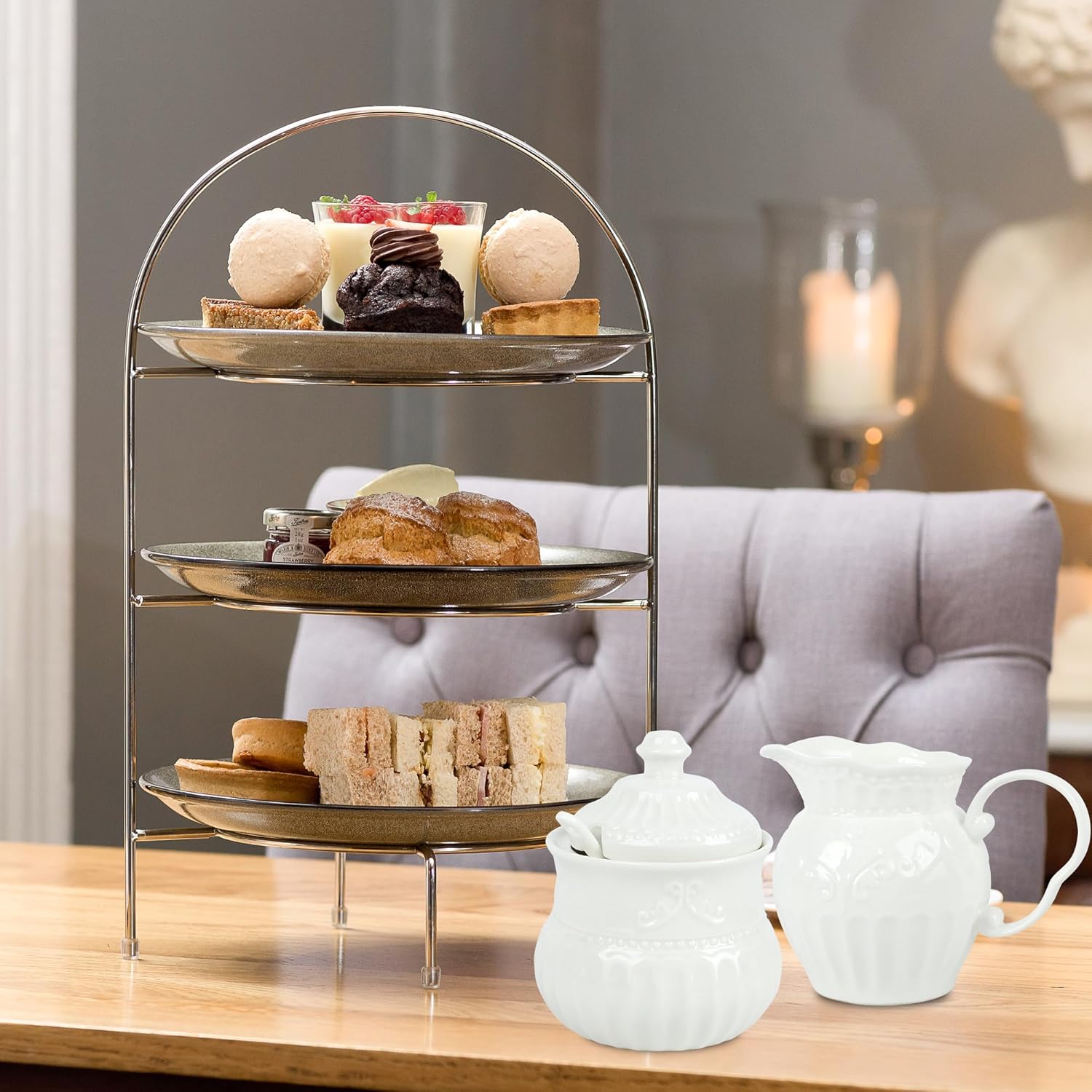 - 【High-Quality Material】Our sugar and creamer set is made of fine ceramic and exudes sophistication. With its smooth glaze and delicate gold trim, it adds a touch of luxury to any table setting.