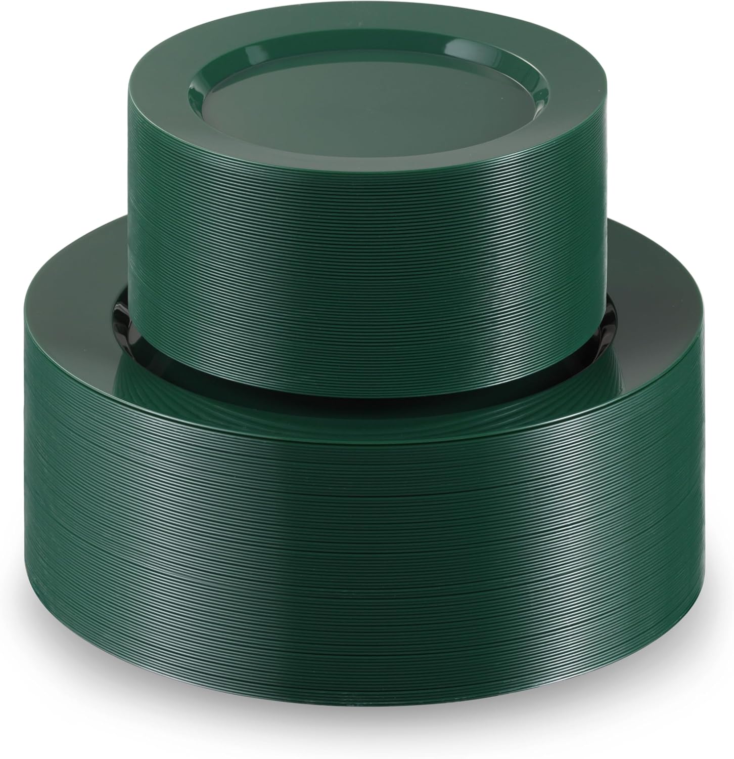 Munfix 100 Green Plastic Plates Set, 50 Pcs 10 Inch Dinner and 50 Pcs 7 Inch Dessert Plates, Elegant Fancy Heavy Duty Disposable Plates for Party, Wedding, Green