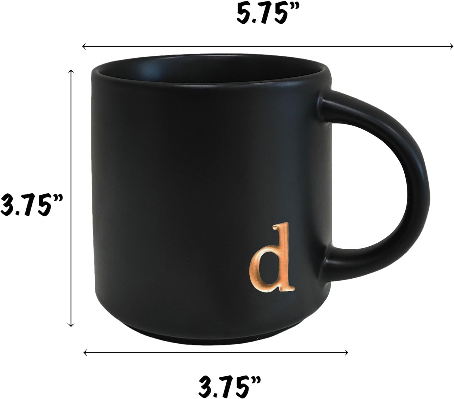 COLLECTIVE HOME - Black Monogram Ceramic Mugs, 15 oz Golden Initial Coffee Cups, Elegant Alphabet Tea Mugs, Personalized Halloween Mug with Gift Box, Perfect for Office and Home Décor (d)