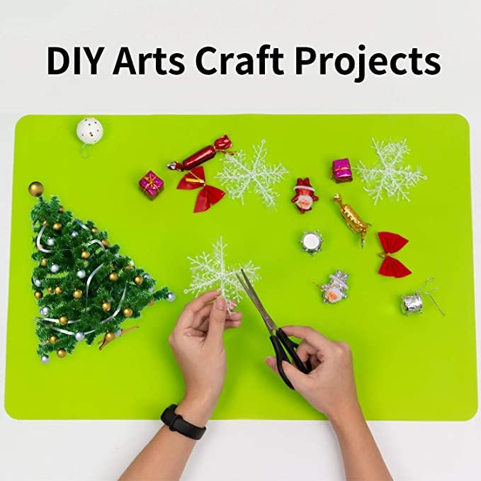 - 🎯 Large Size & Heat Resistant: Extra large silicone mat(27.6"L x 19.7"W), the thickness of the silicone table mat is fine as it rolls up without any wrinkles. The effective insulation of the green large silicone placemat could reach to 446℉(230℃), can protect your dining table or countertop from heat containers. Please don't put the silicone mat near open fire. With vibrant green colors and durable quality makes your workshop fun and tidy.
