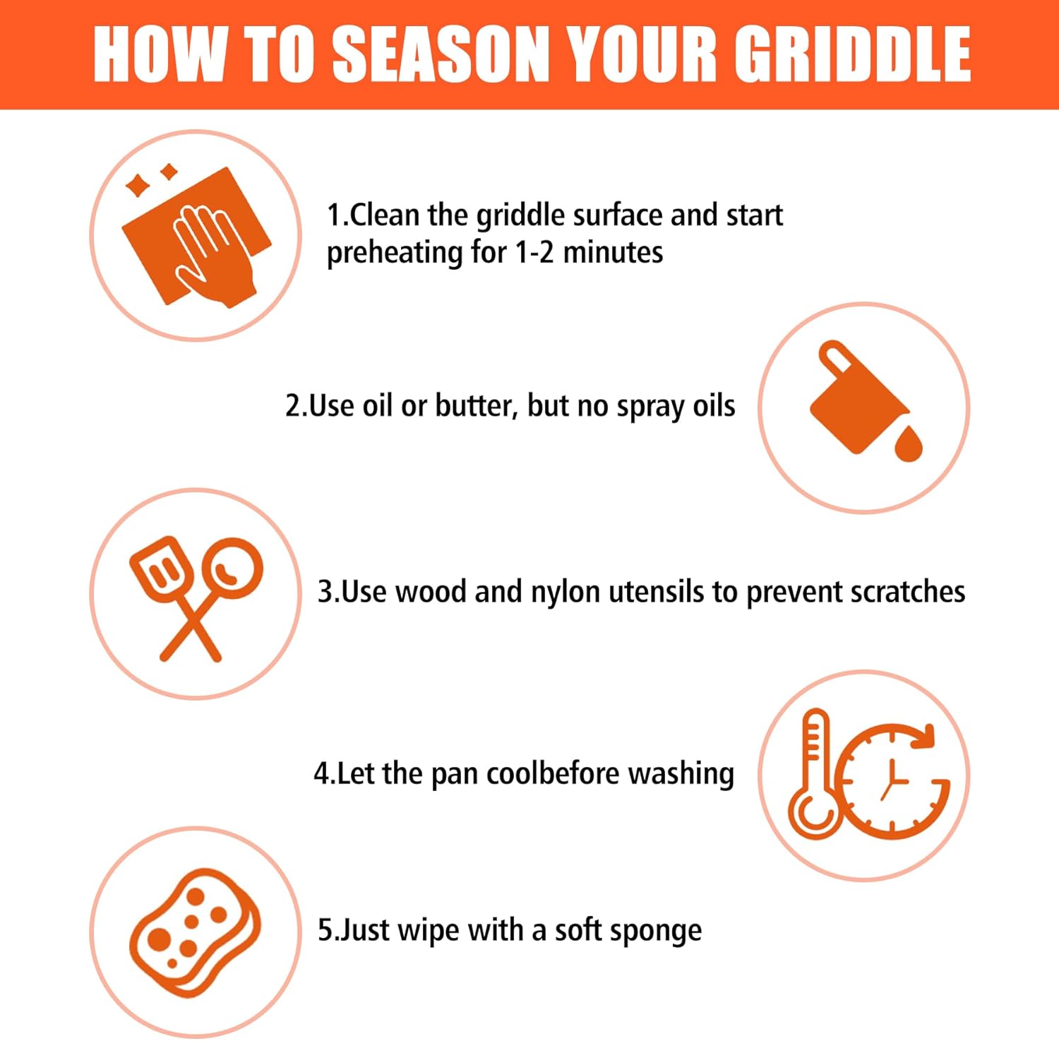 - EXCELLENT NON-STICK PERFORMANCE: The stove top griddle is coated with food-grade non-stick coating and is PFOA, BPA and PTFE free. It ensures food comes out of the pan effortlessly and makes cleaning a breeze, so say goodbye to sticking