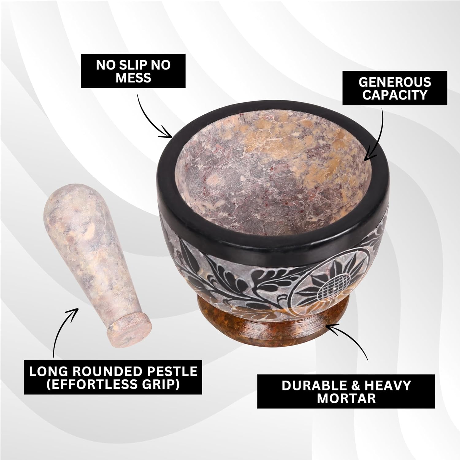 - EASY TO USE & RISK-FREE PURCHASE: The product is extremely easy to use. You need to simply put the ingredients, wet or dry, into the mortar and crush it using the pestle to get a perfect paste with enriching flavors and taste. If for any reason our product fails to meet your expectations, you are welcome to return it for a hassle-free, return. we also replace it with no questions asked.