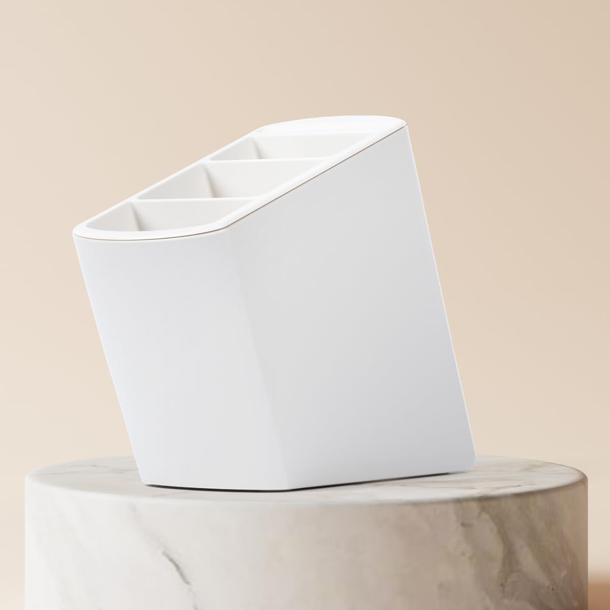 - Stable & Gentle on your Kitchen - The non-slip silicone feet and uniquely angled design keep this cooking utensils caddy from unwanted slips, slides and tip-overs. It is also kinder to your kitchen countertops as it will not scratch, rust or stain them.