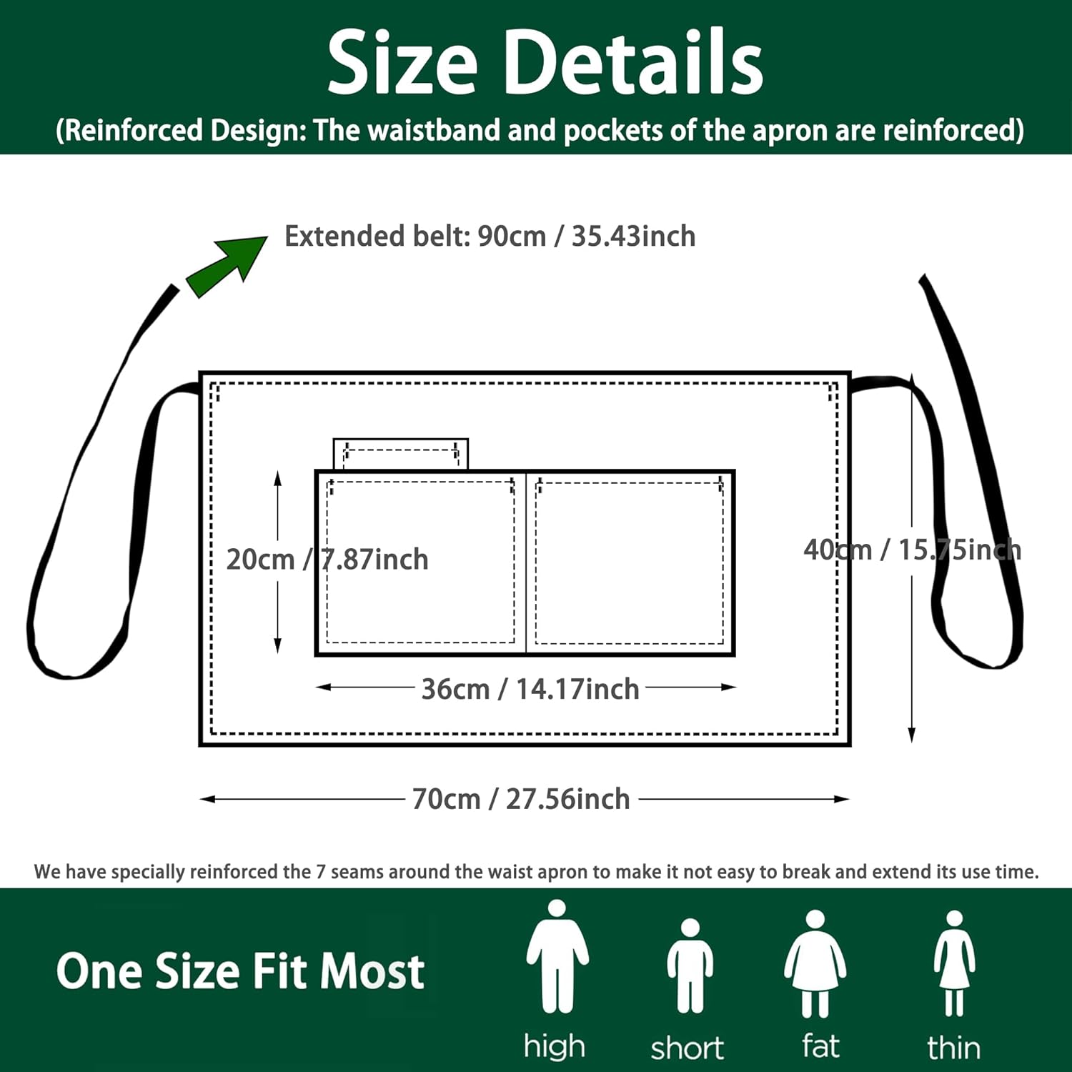 - Excellent Material - The green servers apron size is L, 15.75'' L * 27.56'' W, made of high quality 20% cotton 80% polyester, thicker and comfortable. Short apron suitable for cleaning, serving, cooking, baking, gardening