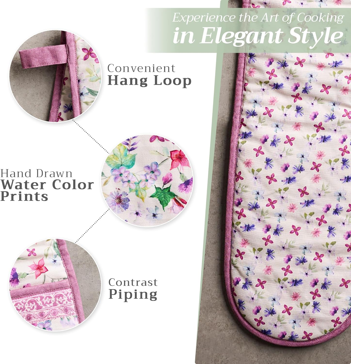 - 100% Quilted cotton: Crafted from premium quilted cotton for superior heat resistance and durability. This double oven mitt offers a soft, flexible grip and protects your hands during baking, roasting, or grilling