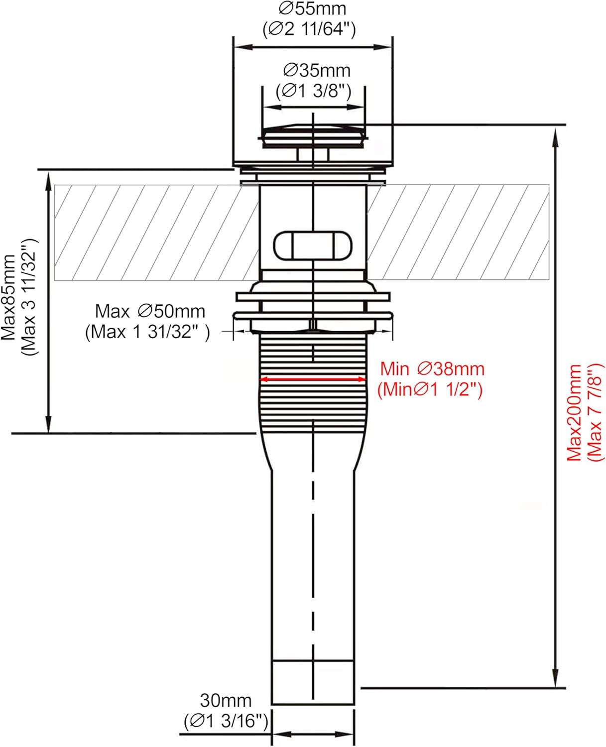 - SIZE: It fits standard US bathroom sink with 1 1/2 inch to 1 31/32 inch drain hole (1.5"-1.96")
