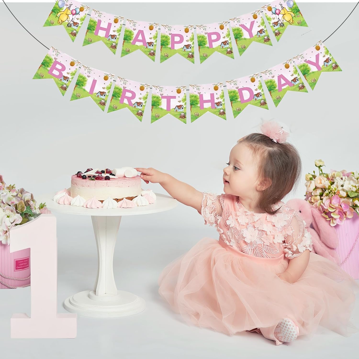 Winnie Birthday Party Banners Classic Pooh Happy Birthday Decoration Banners Signs for Kids Girls 1st Baby Shower Decorations Winnie Birthday Party Supplies
