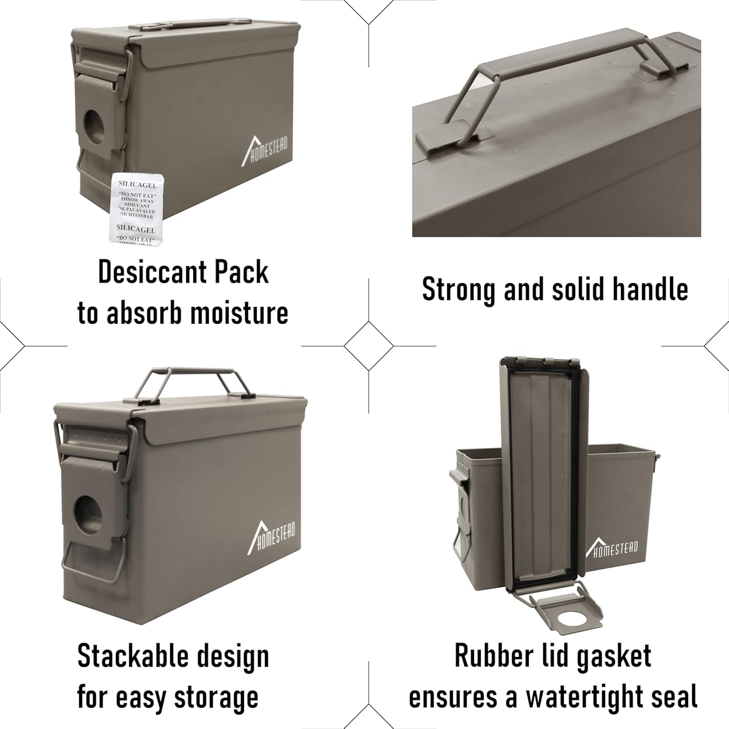 - HEAVY DUTY Steel Ammo Can - Made with high-quality metals, these metal ammo boxes are perfect for long-term storage. Built to last and endurance, the advanced construction of these steel containers means that your belongings are kept clean