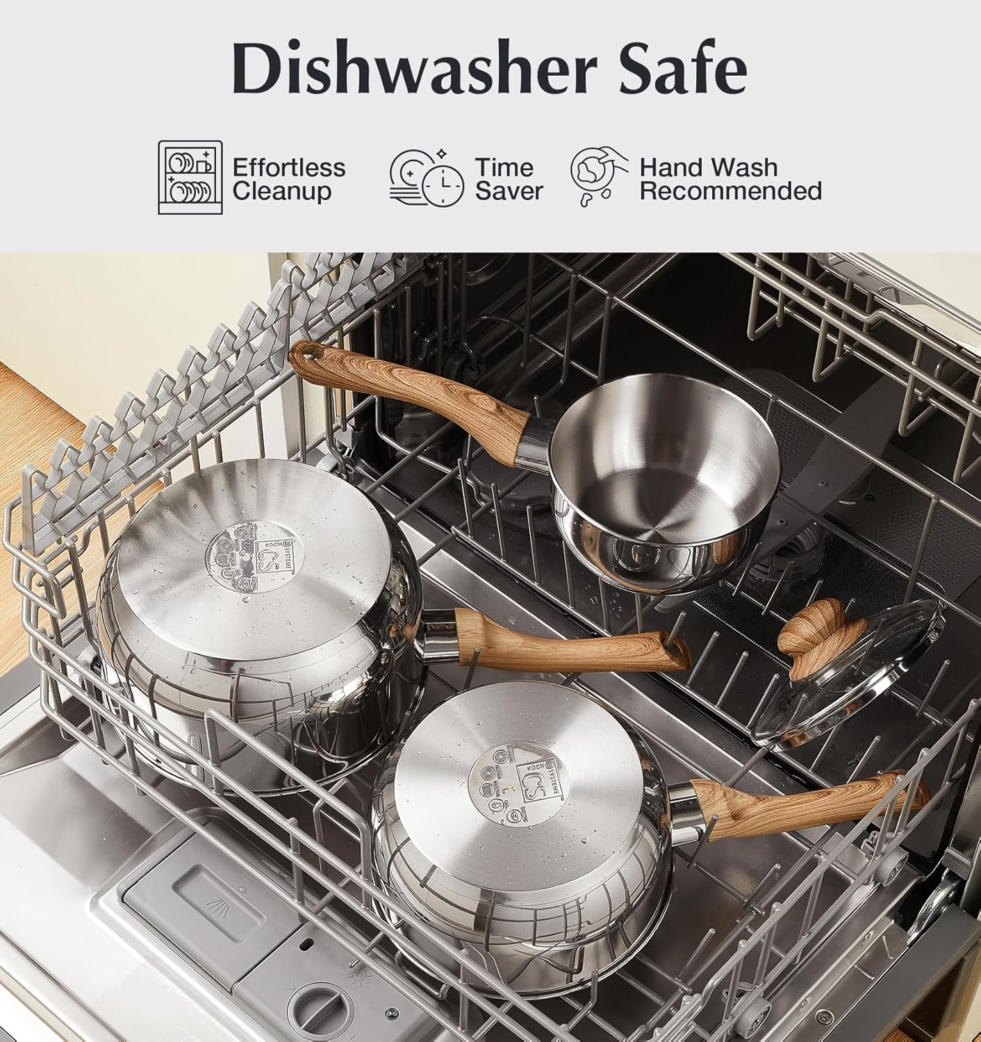 - Induction-Ready : Specifically designed for induction stoves, this stainless steel sauce pan ensures optimal performance while remaining fully compatible with glass, electric, and ceramic cooktops. Perfect stainless steel sauce pan set for Induction cooking stove.
