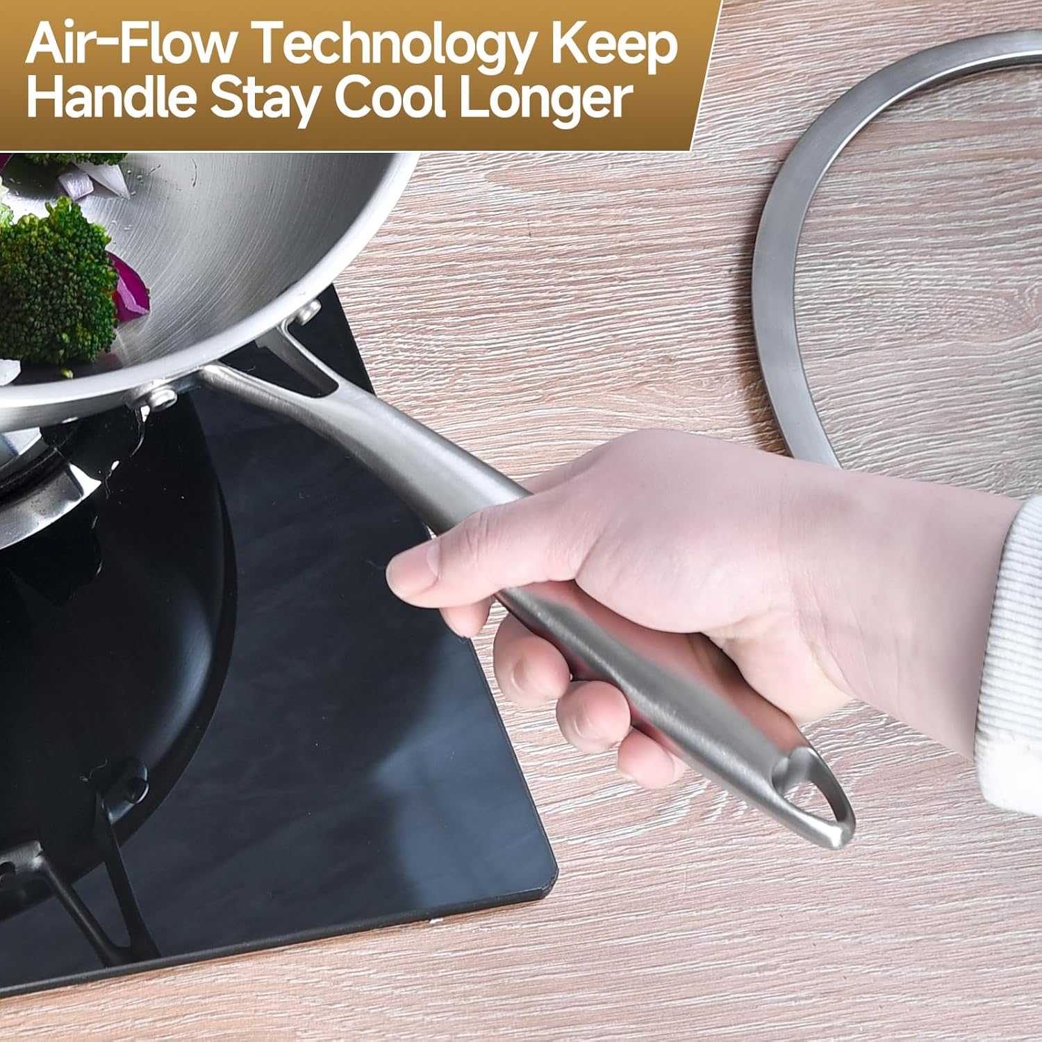 LOLYKITCH 14.5 Inch Tri-Ply Stainless Steel Wok Pan, Stir-Fry Pan,Induction Chef's Cooking Pan,Dishwasher and Oven Safe,Heavy Duty and Detachable Handle
