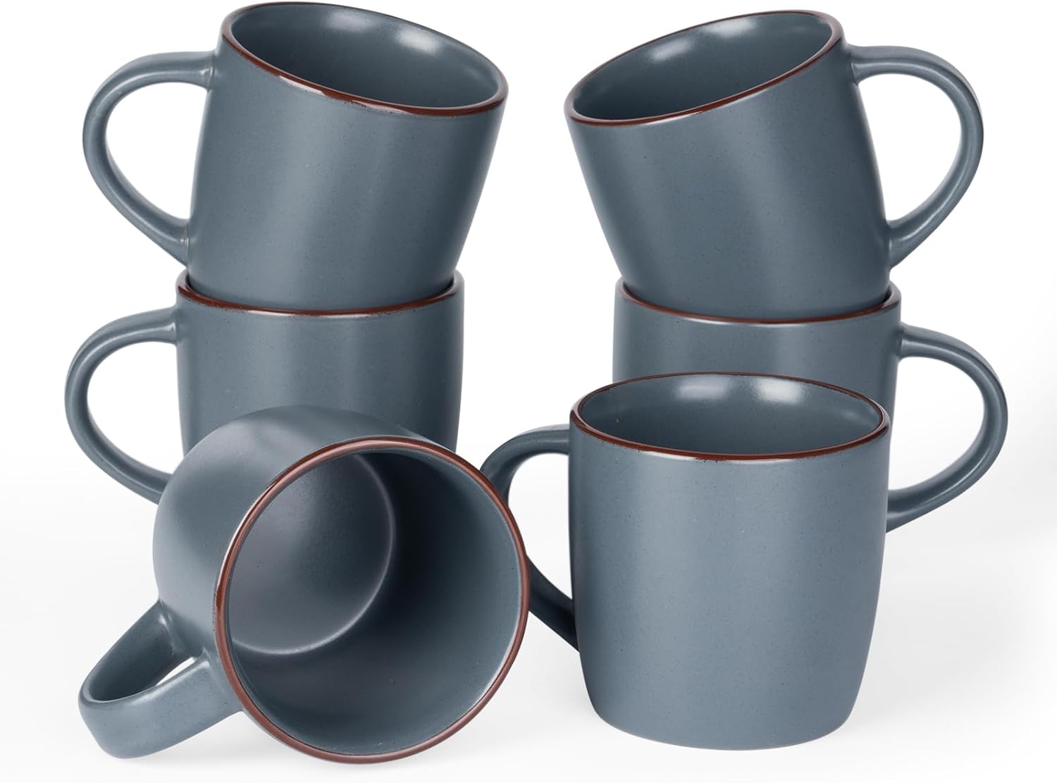 famiware Mercury Coffee Mugs 13 oz, Coffee Mugs Set of 6 with Handle, Cups for Latte, Hot Tea, Cappuccino, Mocha, Cocoa, Charcoal