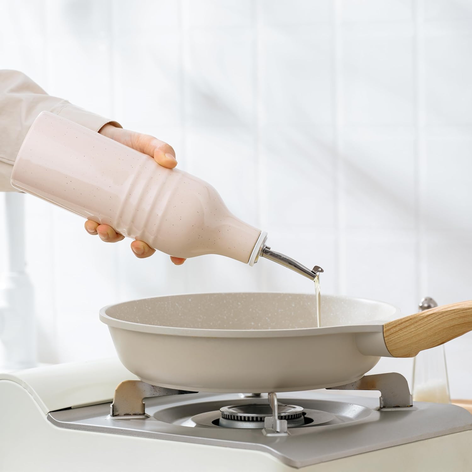 famiware Jupiter 16oz Ceramic Olive Oil Dispenser Bottle, Olive Oil and Vinegar Dispenser Bottle Set of 2 with Stainless Steel Pourers, Suitable for Storage Vinegar, Liquids, Light Pink