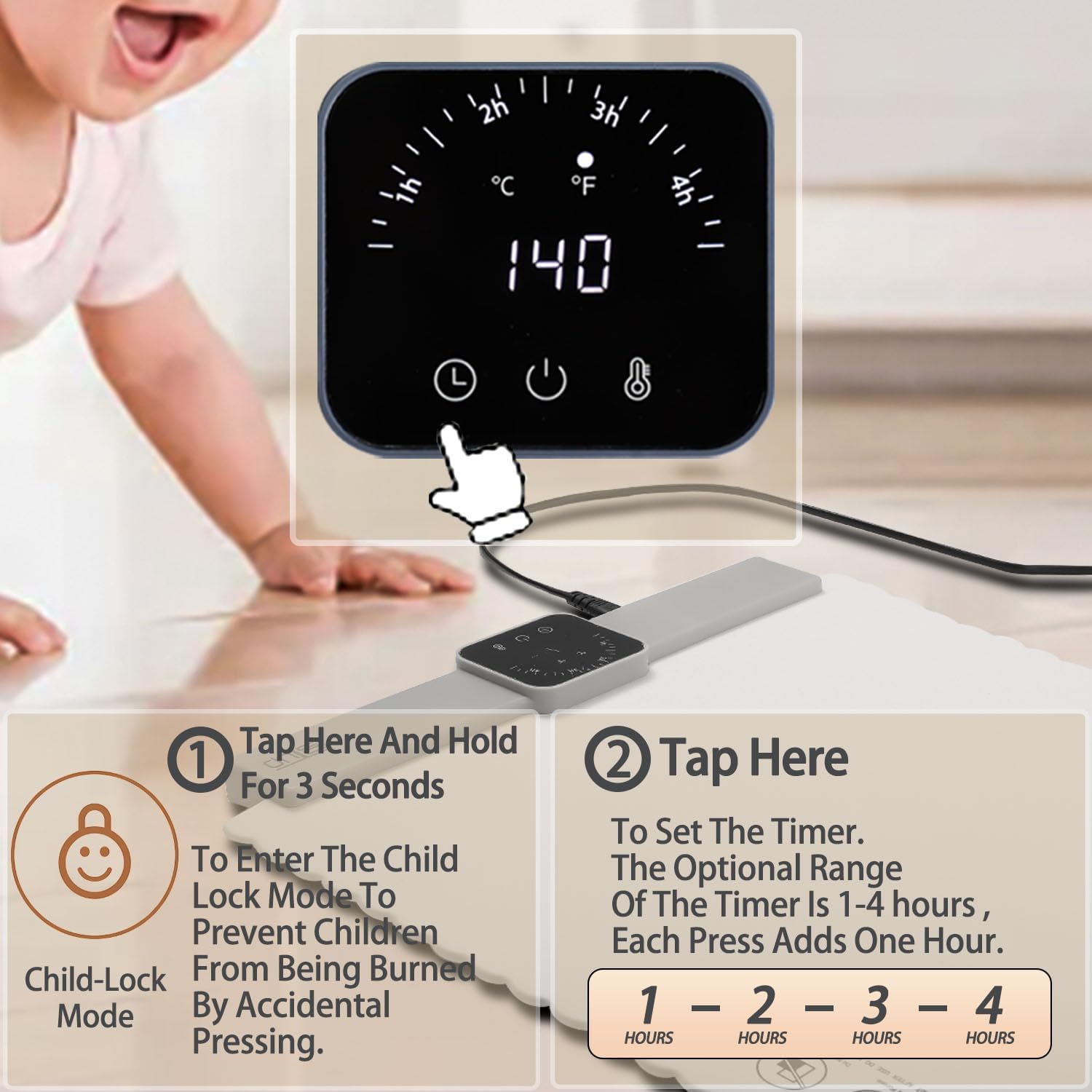 - 💗4-Timer Settings: 1h-2h-3h-4h. In Addition Child Lock To Prevent Children From Accidentally Touching and Ensures That The Unit Operates Safely Around Children