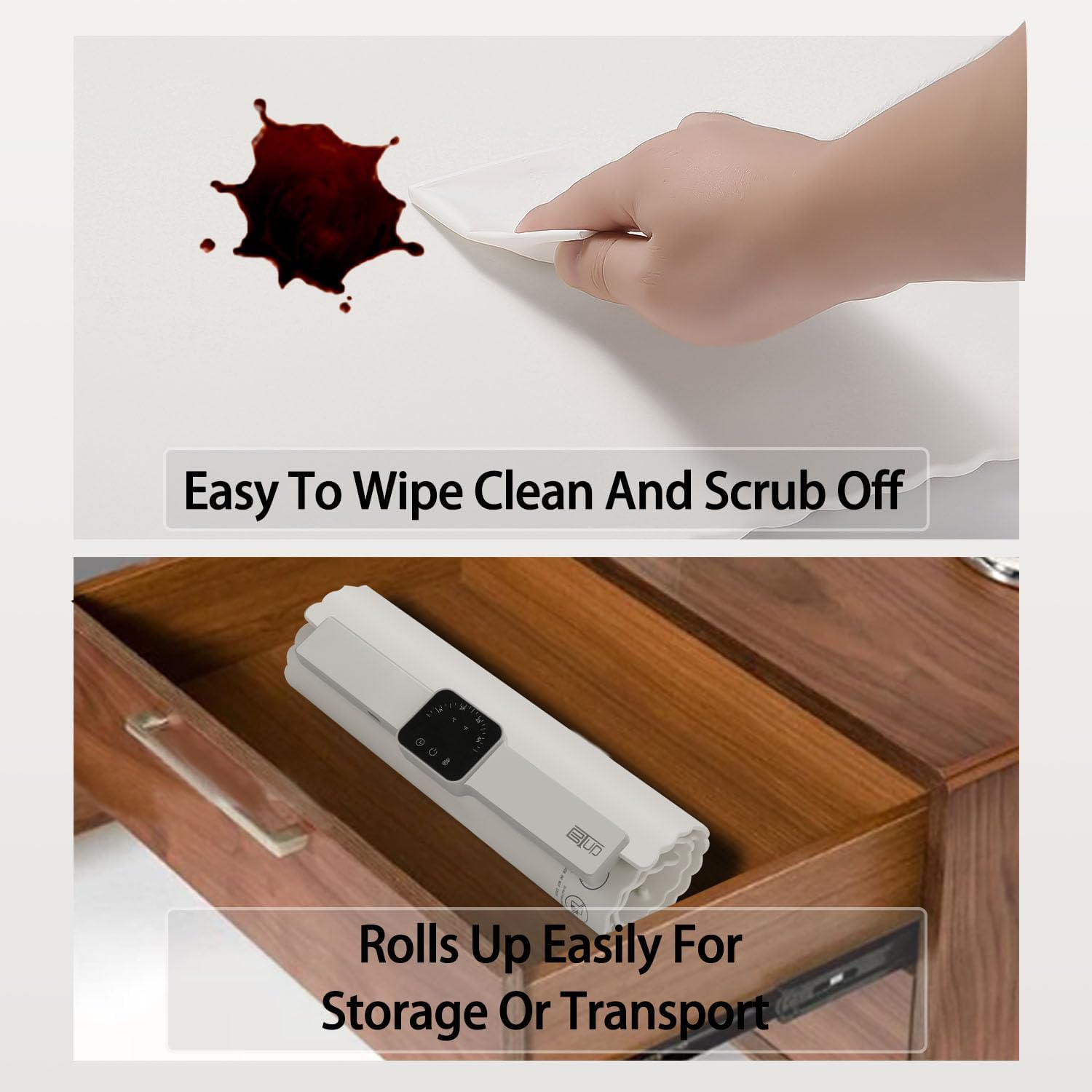 - 💗Rollable For Easy Storage & Easy to Clean Surface: Measuring 26"L x 15.35"W x 0.83"H , BTUP Electric Warming tray Features a Smart Foldable Roll Up Design that Ensures Easy Storage &Space-Saving, Premium Silicone Nano Material Featuring Splash-proof and Stain-Resistant or Oil Resistance Properties.