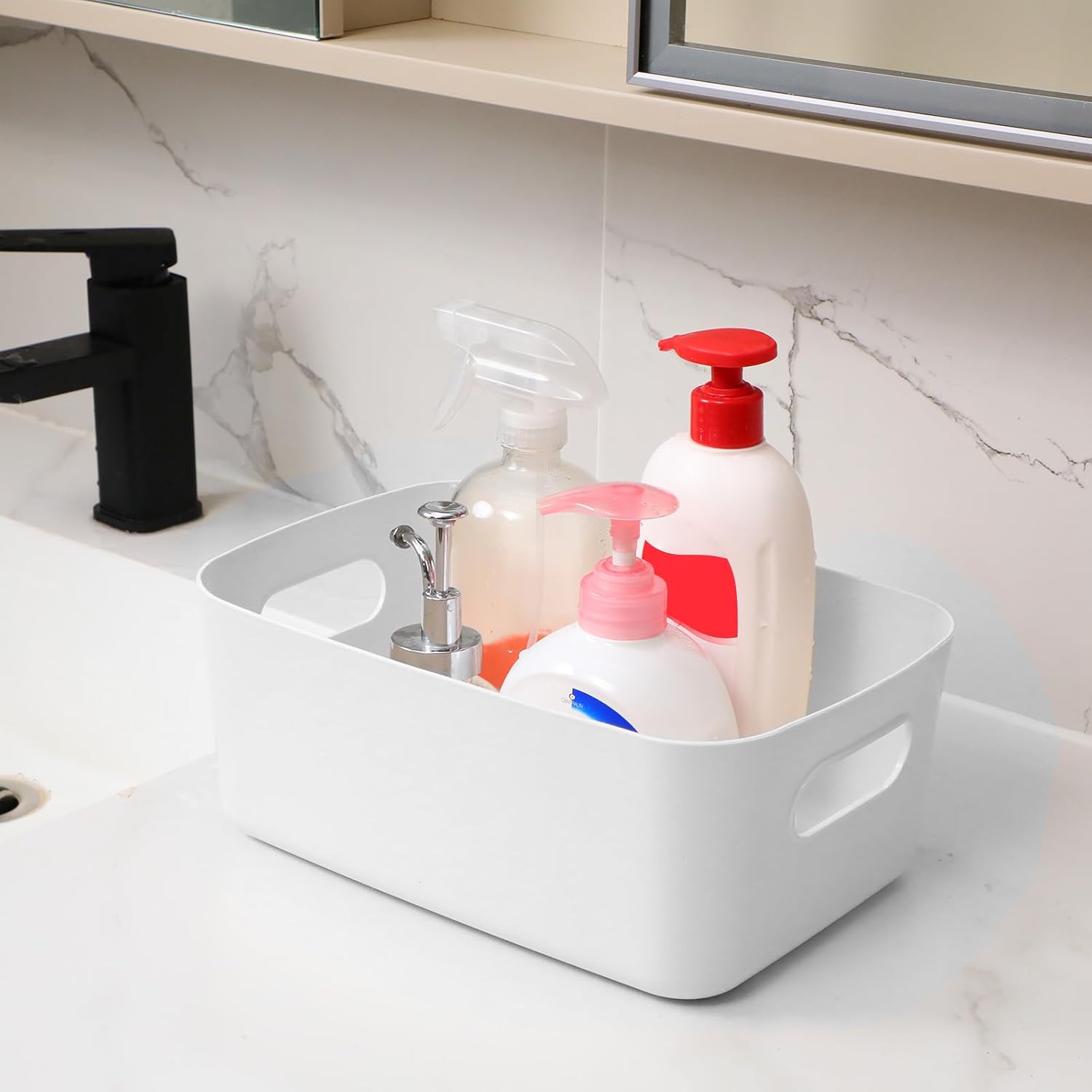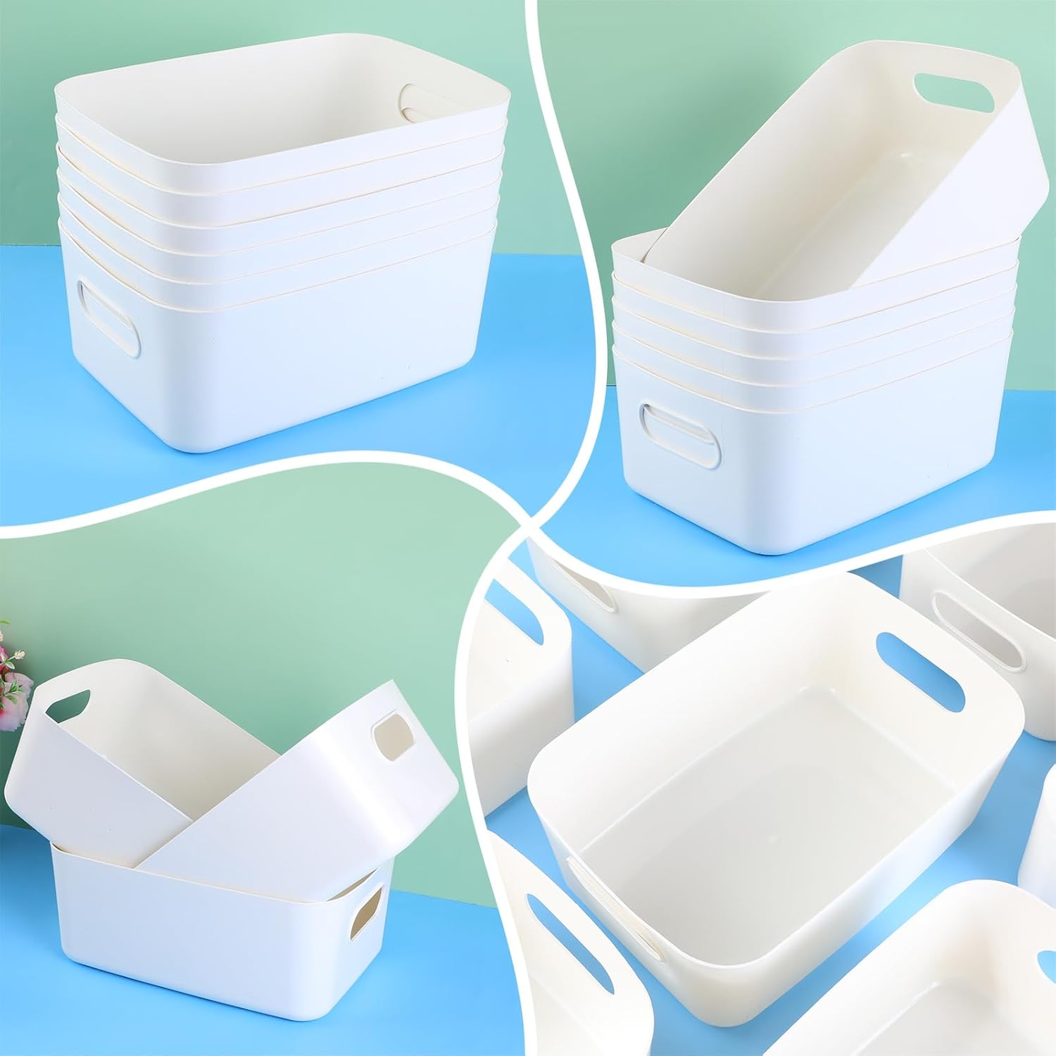 - Multipurpose Storage Bin Set: you will receive 10 pieces of white plastic storage bins with handles, the ample quantity can certainly meet your daily storage requirements and classification needs, which can hold a lot of things, maximizing your space and making your home tidier and cleaner