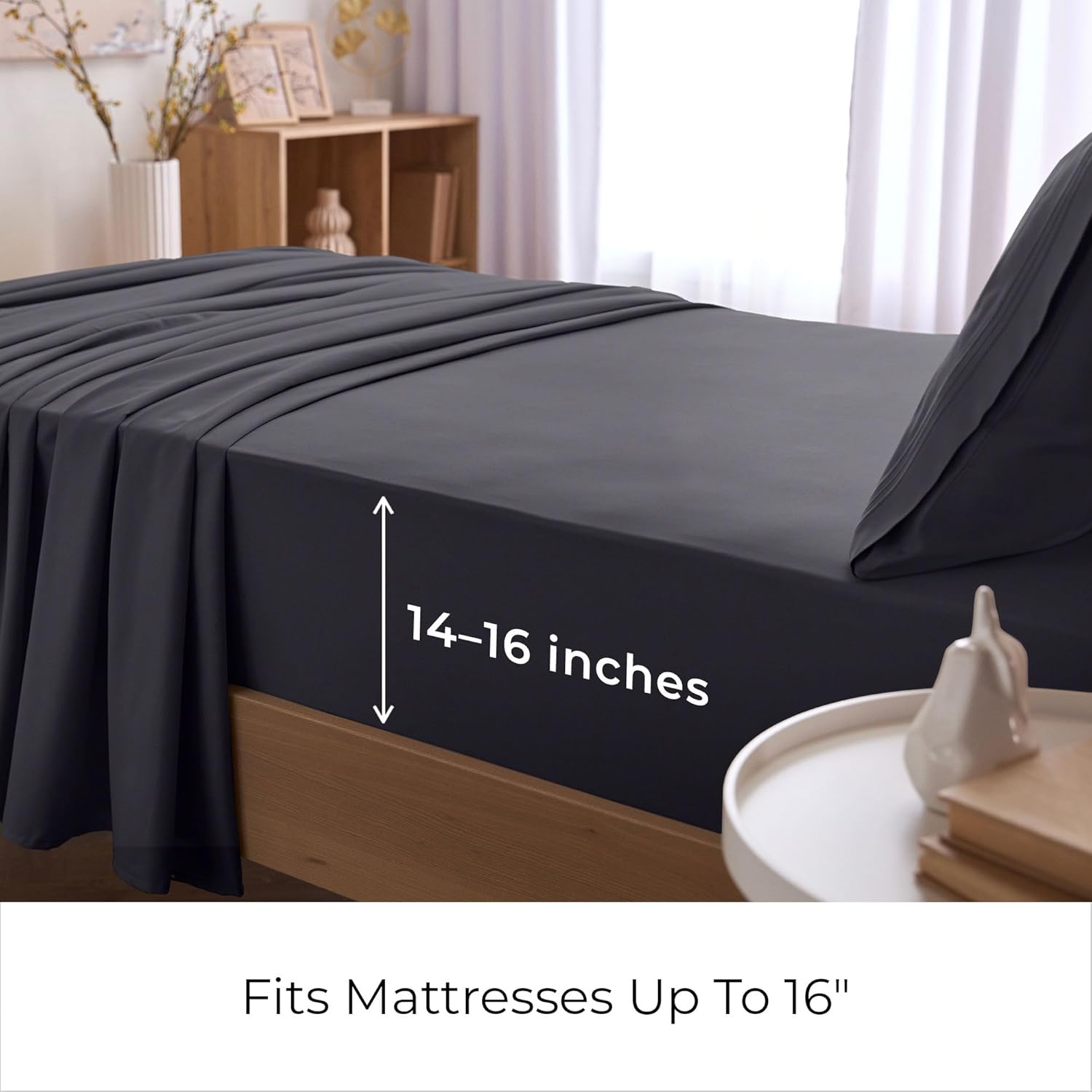 - Complete 3-Piece Twin Bedding Set - Includes 1 Fitted Sheet (39"x75"x16"), 1 Flat Sheet (66"x96"), & 1 Pillowcase (20"x30") - all crafted from double-brushed microfiber for an ultra-soft feel. Temperature-regulating to keep you cozy in winter and cool in summer.