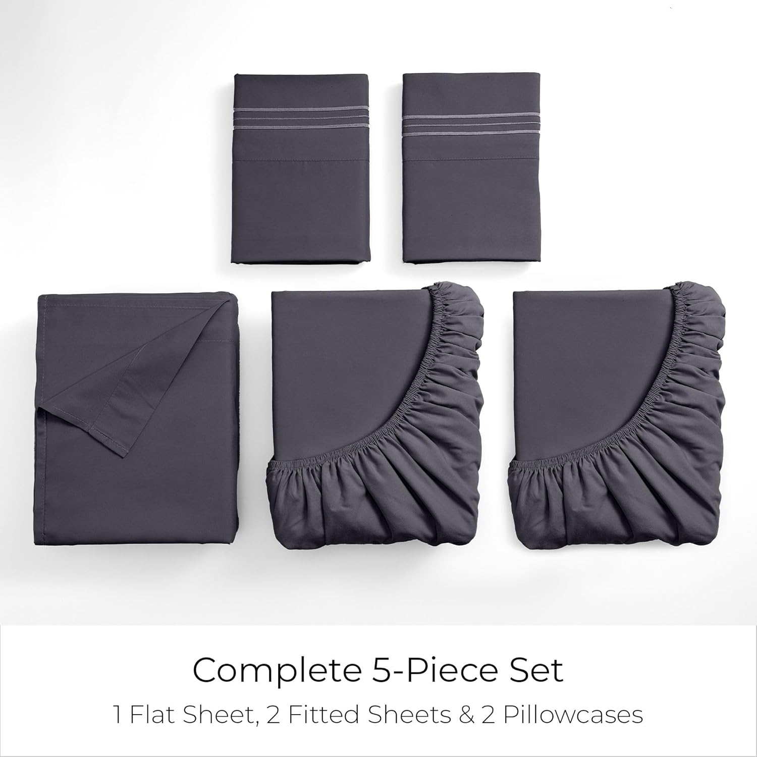 - Complete 5-Piece Split King Bedding Set - Includes 2 Separate Fitted Sheets (39"x80"x16"), 1 Flat Sheet (108"x102"), & 2 Pillowcases (20"x40") - all crafted from double-brushed microfiber for an ultra-soft feel. Temperature-regulating to keep you cozy in winter and cool in summer.