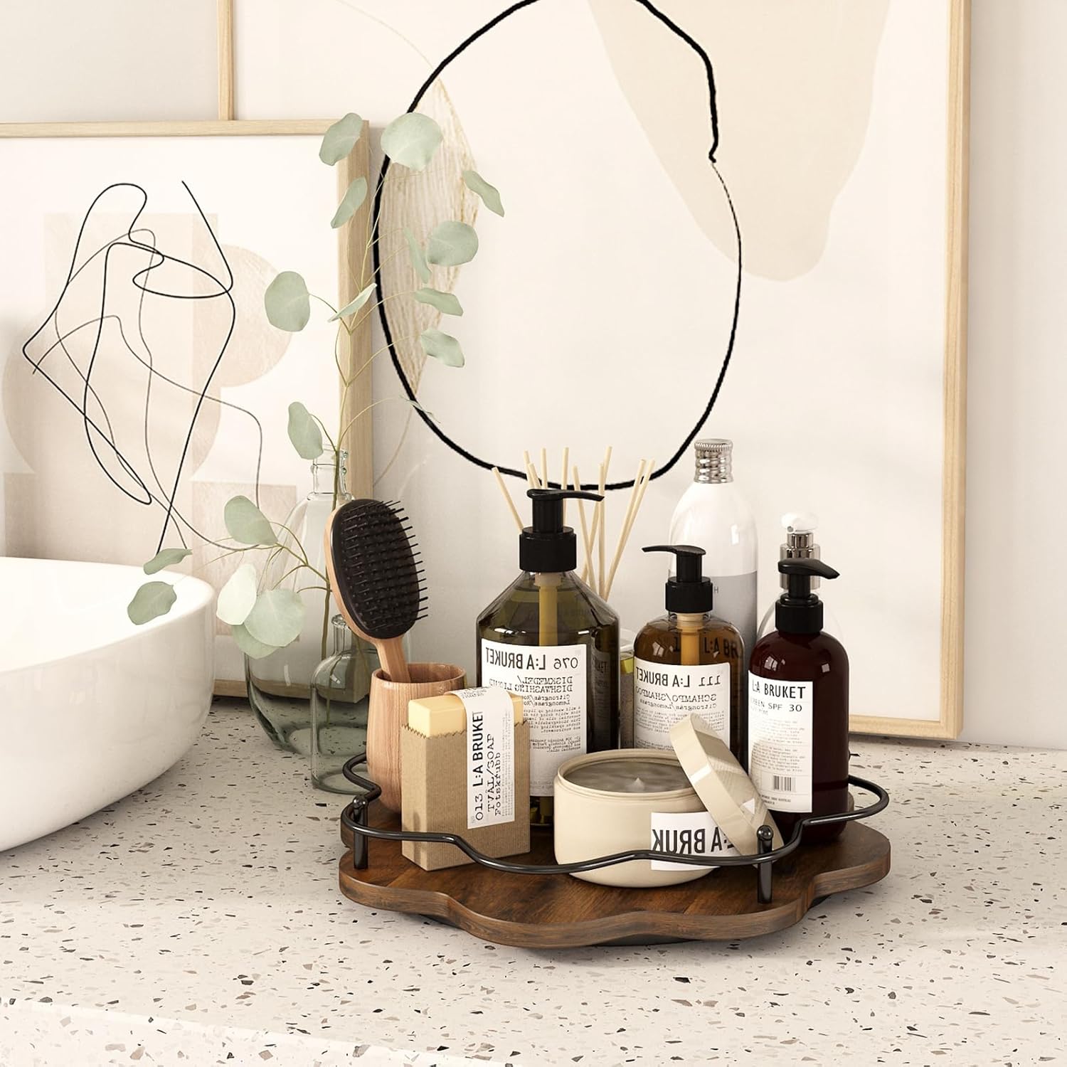 - 【Vintage Material】This Round Wooden Lazy Susan made with handmade craftsmanship.It is made of carbon steel and high-density wood fiberboard is very strong and durable, not easy to wear and tear, no odor.It has a finely textured surface that creates a unique vintage look.