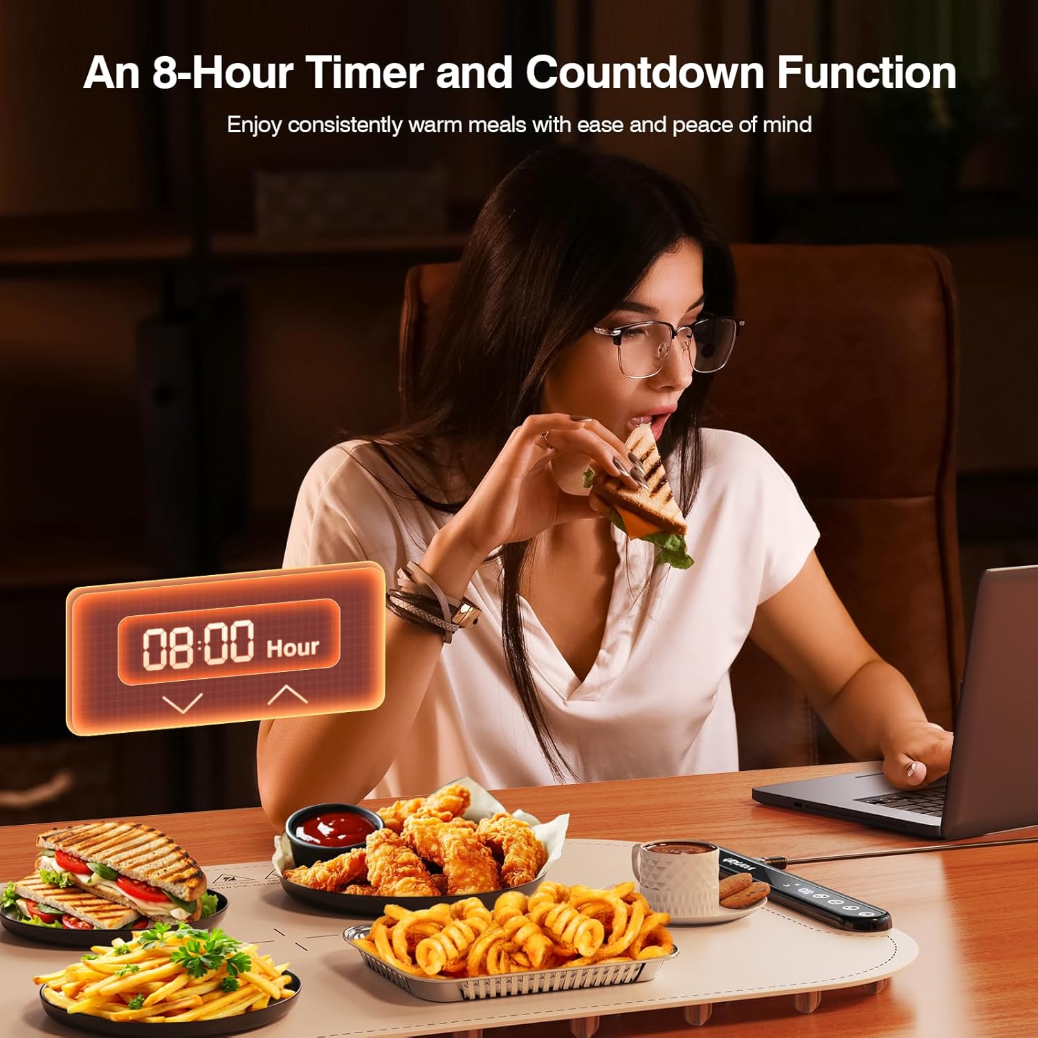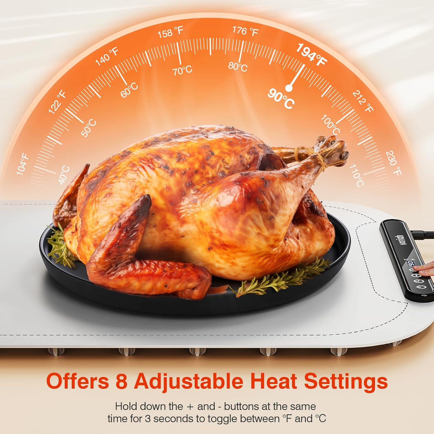 - 【Versatile Warming Tray】Our warming tray features 8 adjustable temperature settings ranging from 40°C to 110°C, making it perfect for keeping your dishes warm during family gatherings, parties, or office events.