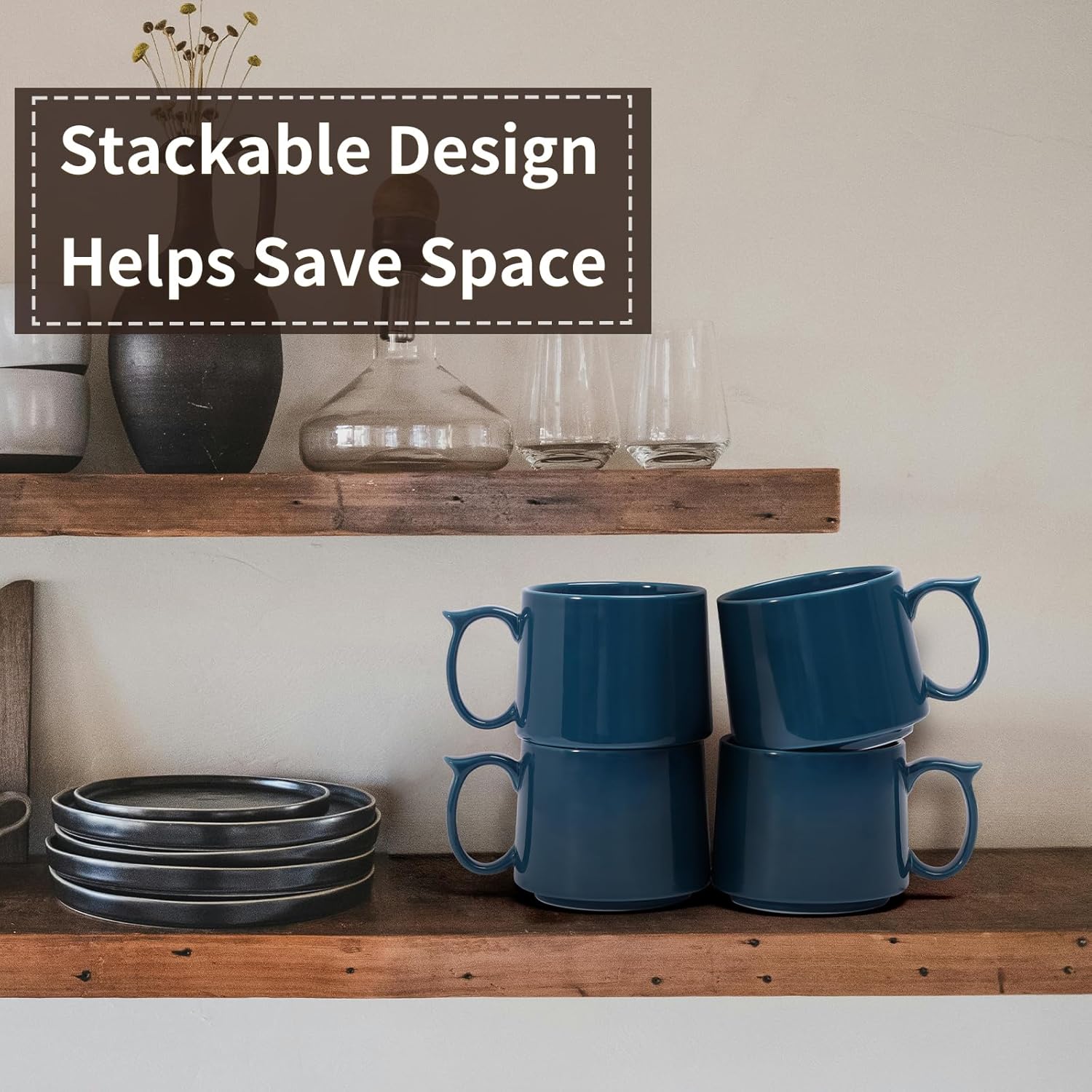 - STACKABLE AND MODERN DESIGN: Our coffee cups have a simple, stylish look and a grooved bottom for stable stacking, helping to save space in the kitchen. Furthermore, the smooth rim of the cup mouth makes drinking water from these cups a comfortable experience